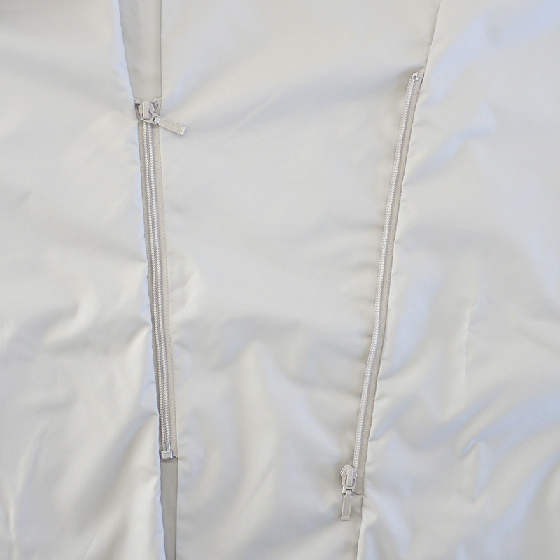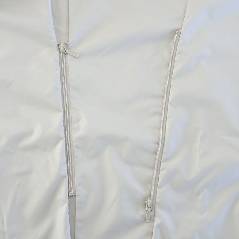 春夏のポイントコーデになるWファスナー(シングルファスナーが2か所)。