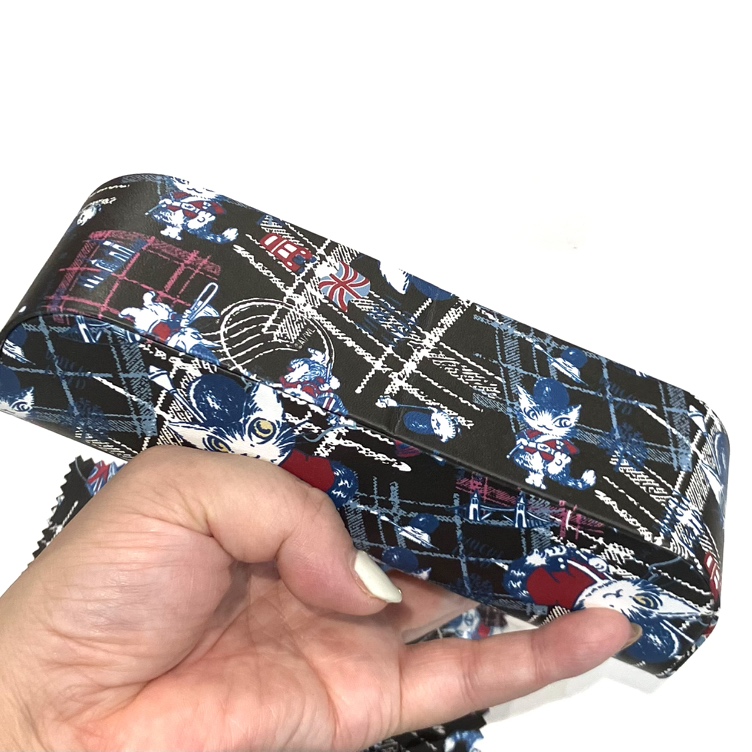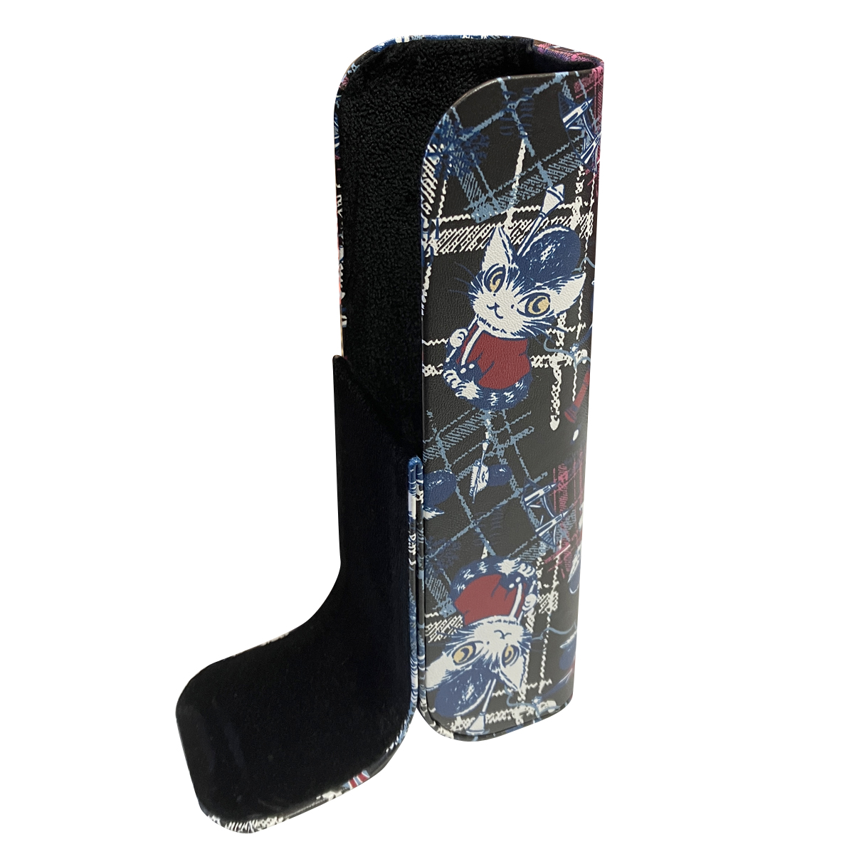 ふたを開けた状態で縦においてご使用いただけるメガネケース。