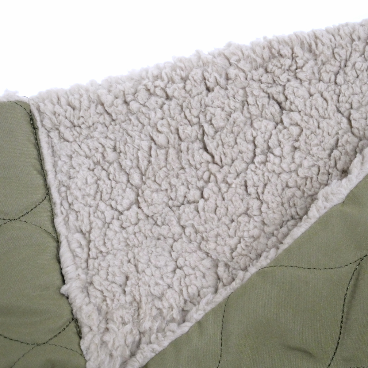 キルティングは半光沢で合わせやすいデザインです。裏側のボアは肌触りが良く保温性が高い仕様です。
