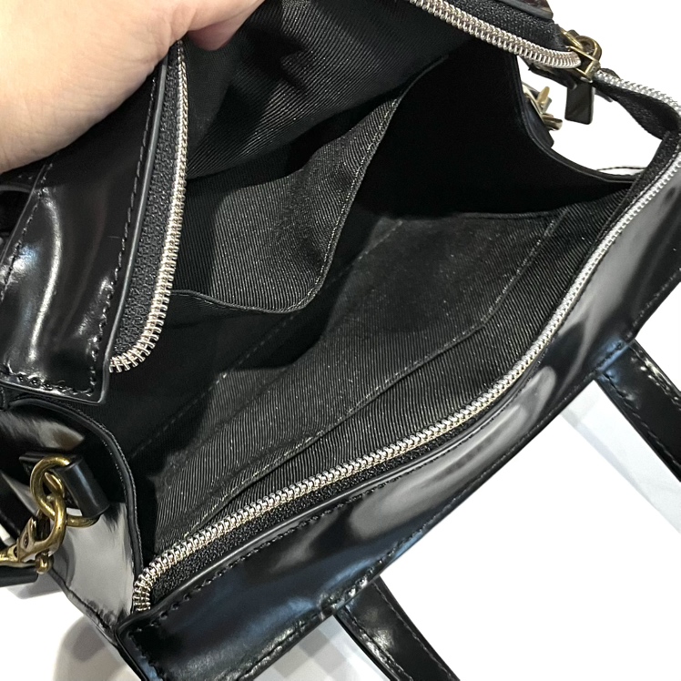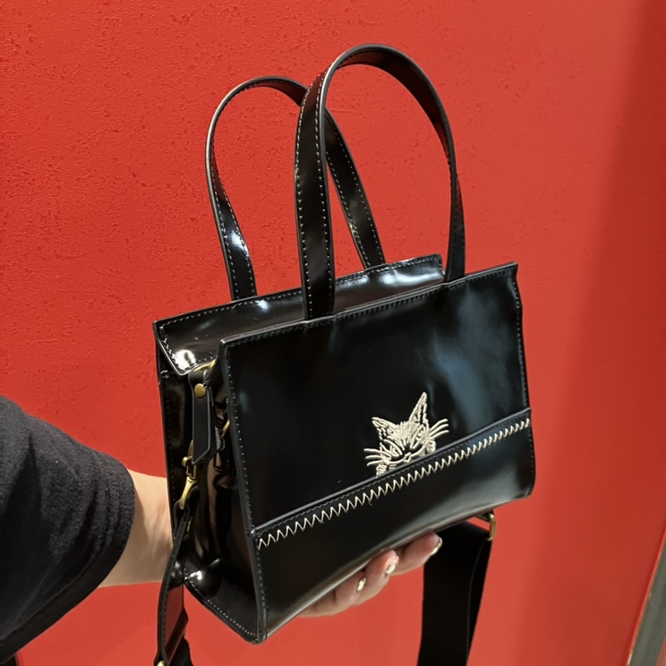 それらを樹脂をコーティングしたエコ素材を使った、きらっとしたツヤが魅力のミニバッグ。