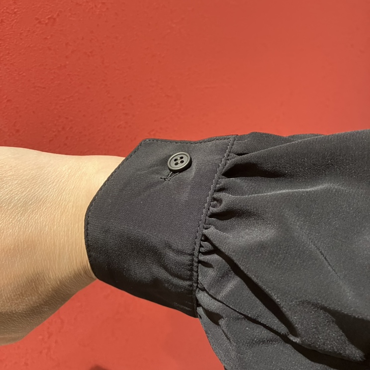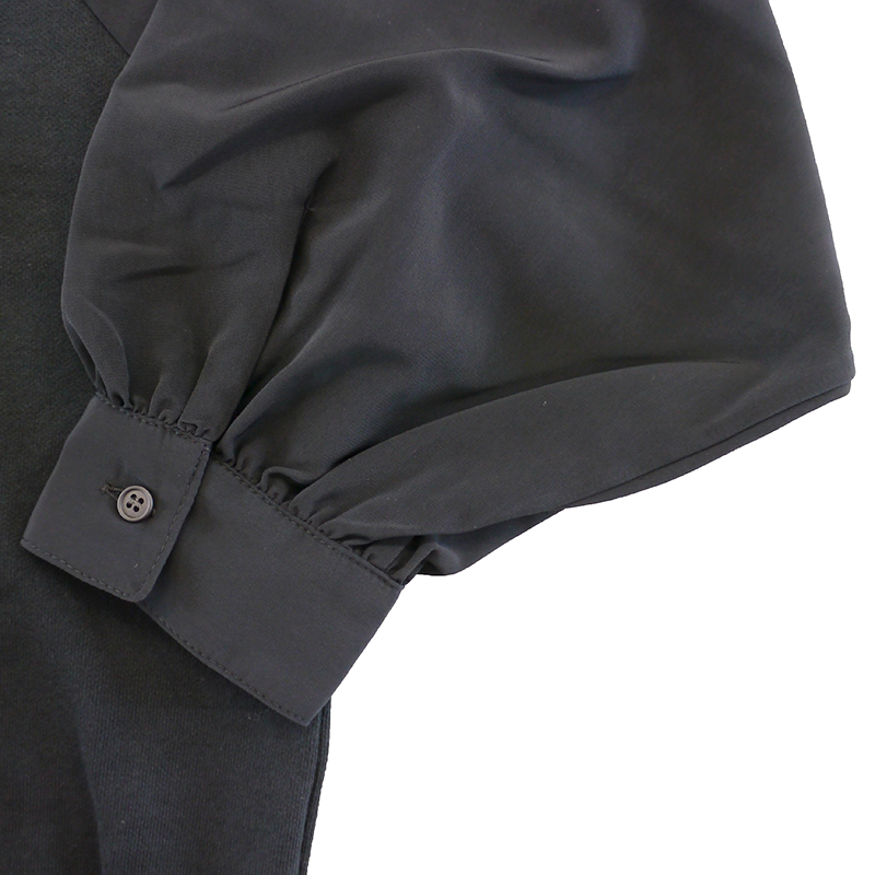 ボディと袖が異素材でのコンビで、袖回りがテロンと落ちて袖先ギャザーがとてもステキ。