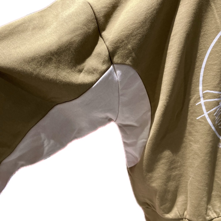 脇下から袖下にまあるい配色キリカエがついています。