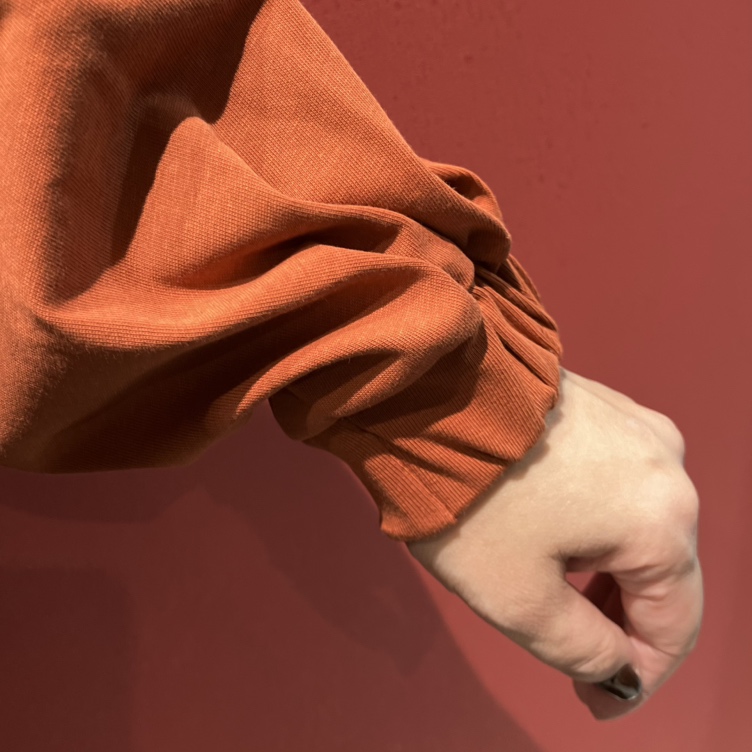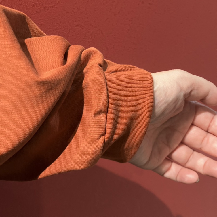 長袖の袖先はゴム入部分とリブの切替のリブでちょっとした優しいアクセントにもなっています。
