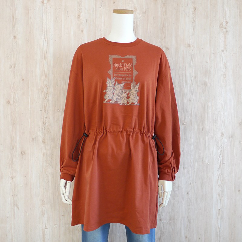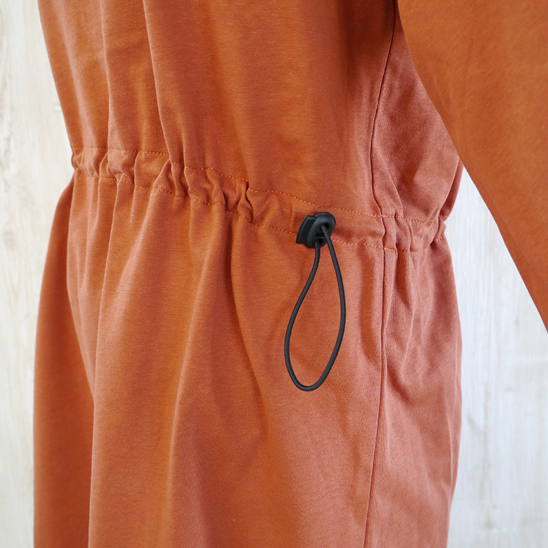ウエスト辺りのコードはゴム状で、ニュアンスを出してもそのまま絞らずストンっと着てもOK。
