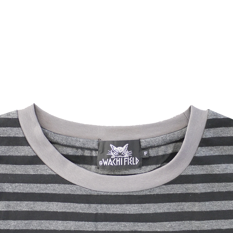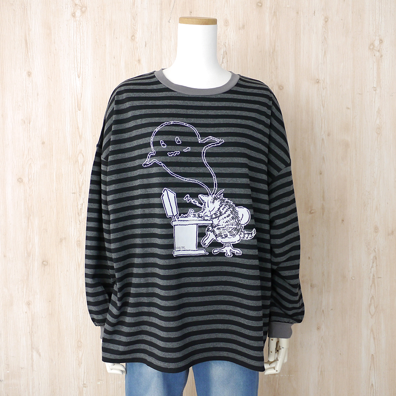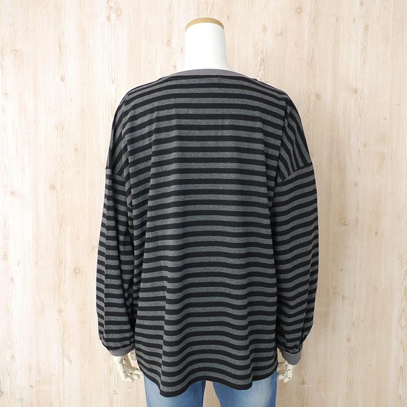 ボーダーワイド長袖カットソー パソ猫 黒系 size:フリー