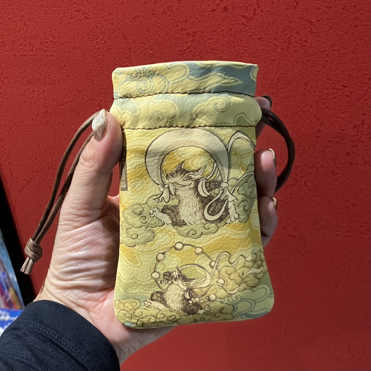 風神雷神福 革巾着