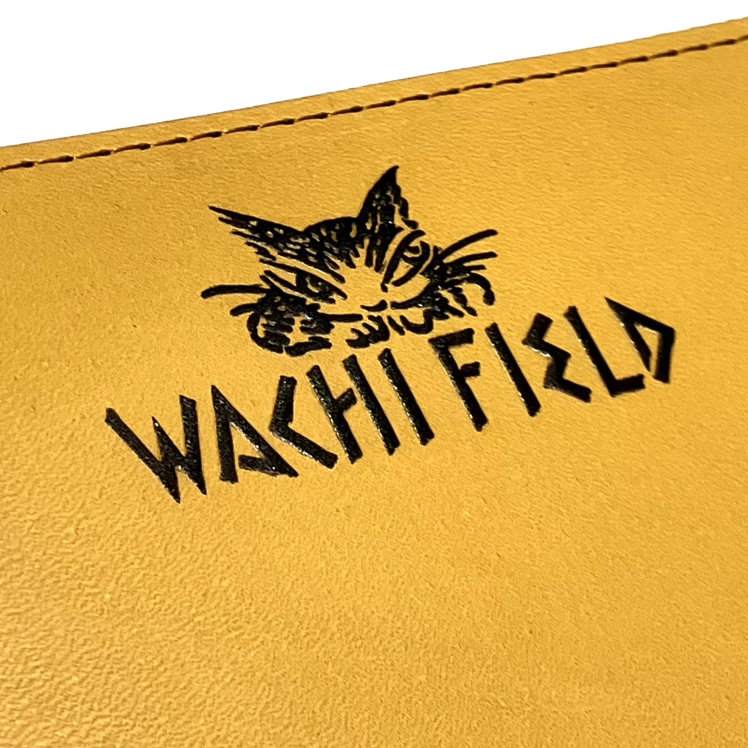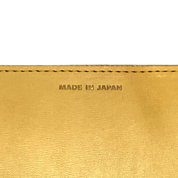 ヌメ調の革に凹版をプレスすることでまわりの革が圧され、マークが盛り上がった仕上がりになる特殊手法。