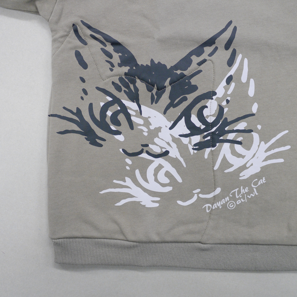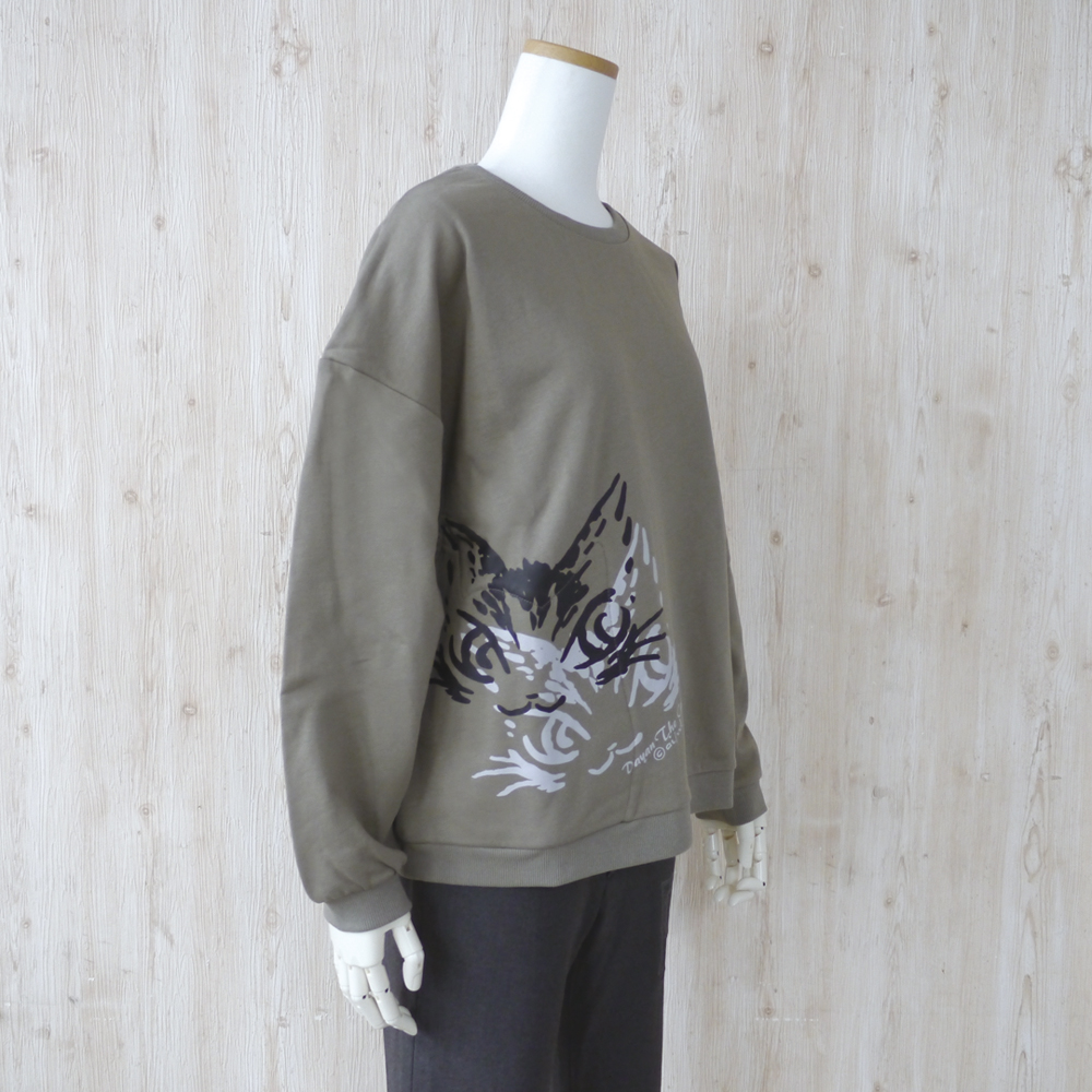 片側に大きな猫型のポケットが付いている、ポイント高いスウェット。