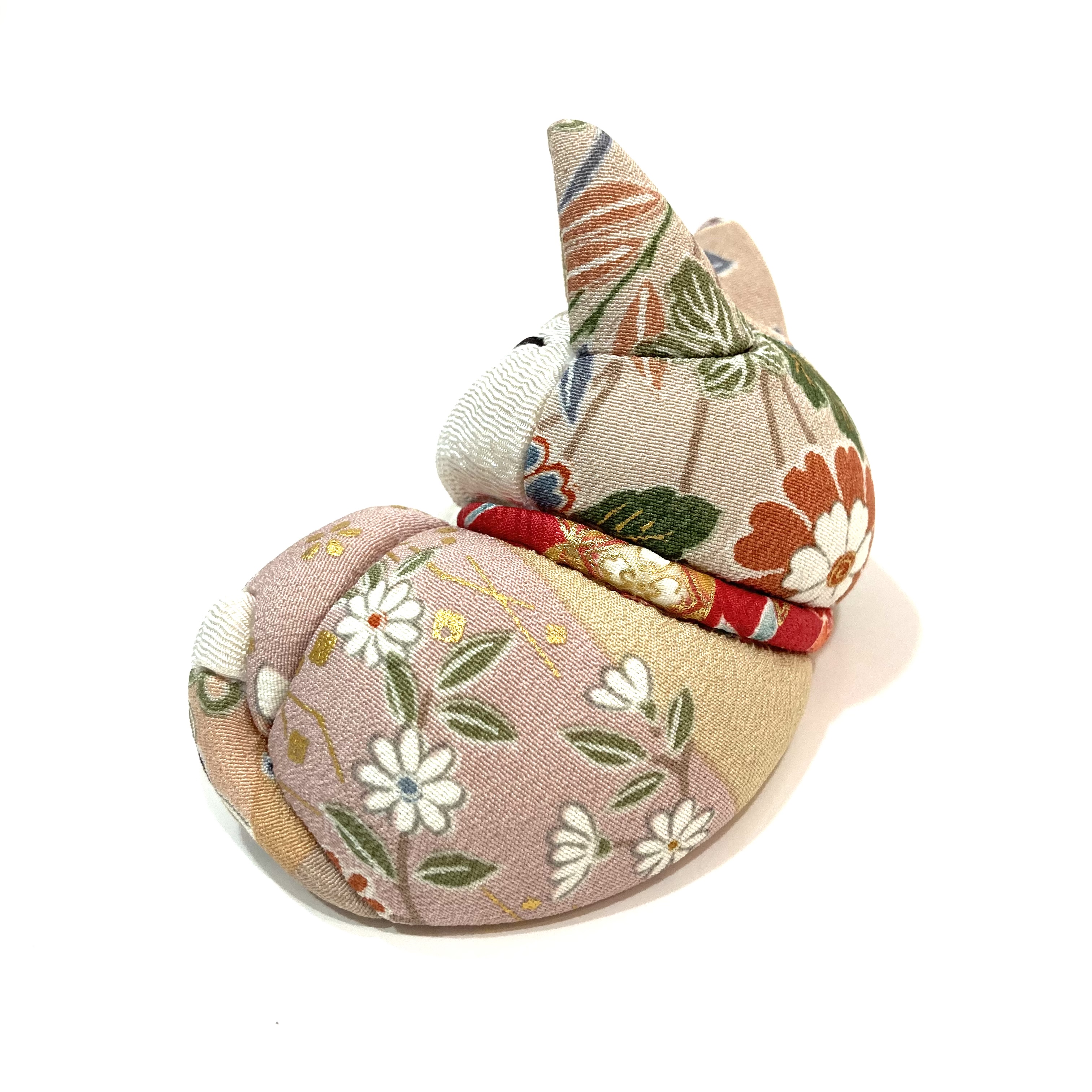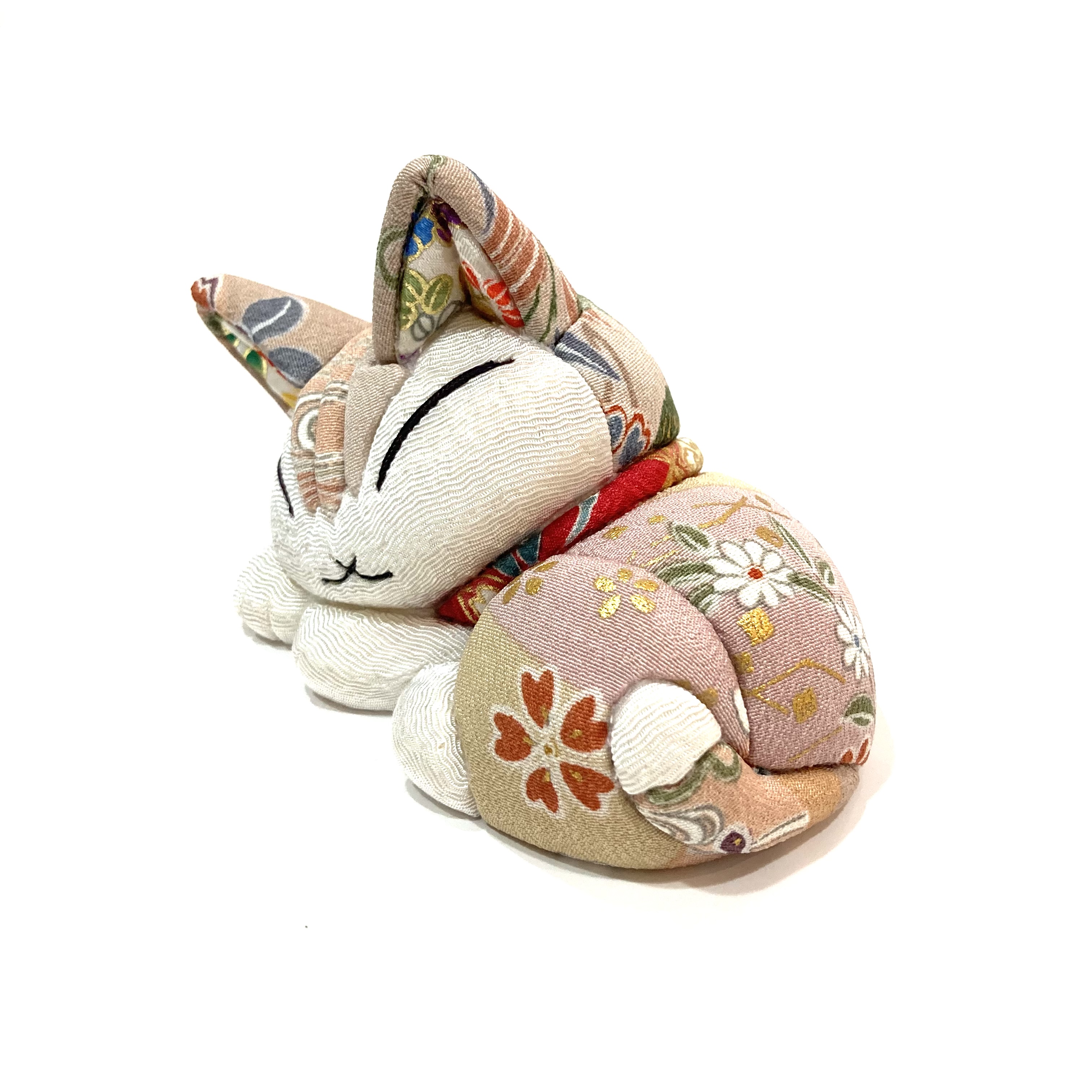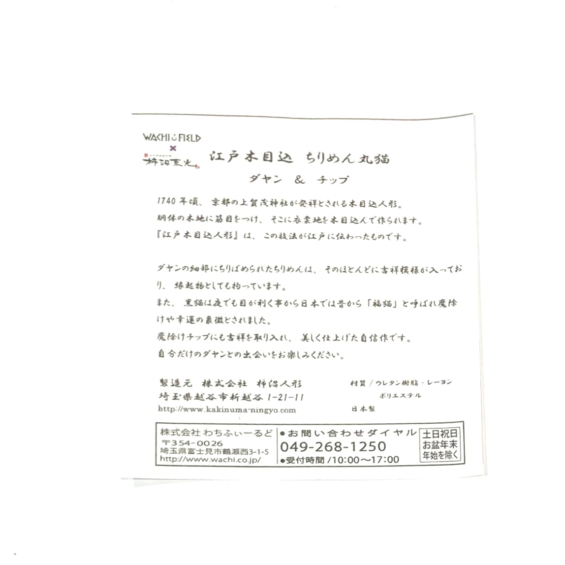 伝統技術「江戸木目込み人形」で有名な柿沼人形社製のちりめんまねきダヤンがまあるく丸まった姿で登場。