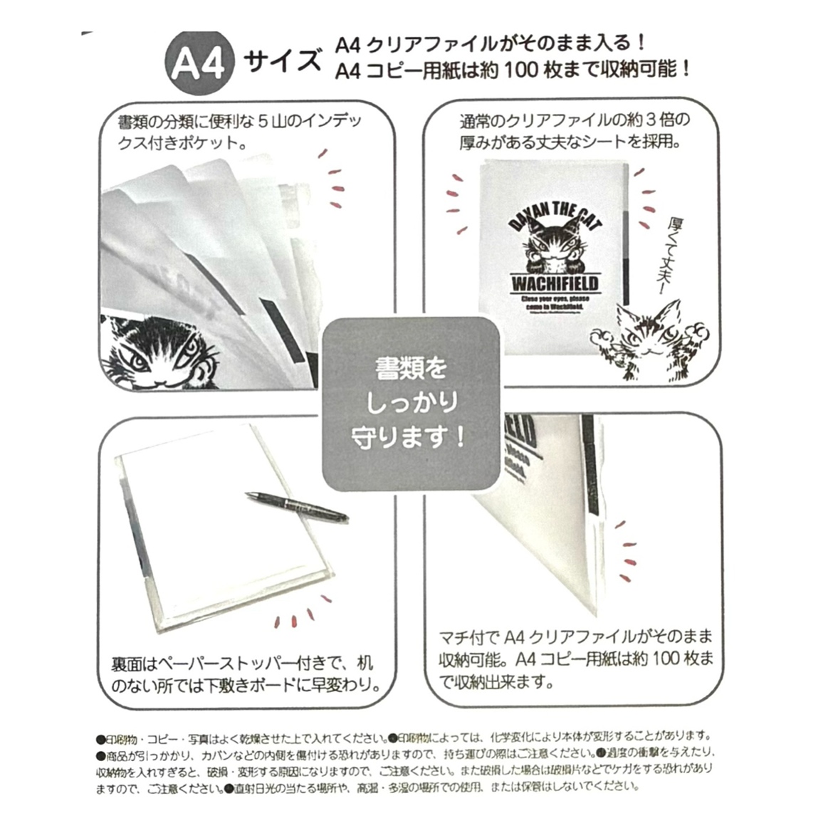マチ付でA4クリアファイルもそのまま収納可能です。A4コピー用紙は約100枚まで収納可能!!
