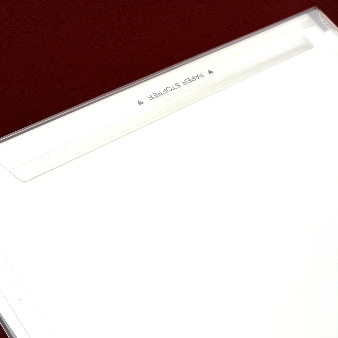 裏面はペーパーストッパー付きで、机のない所では下敷きボードに早変わり。