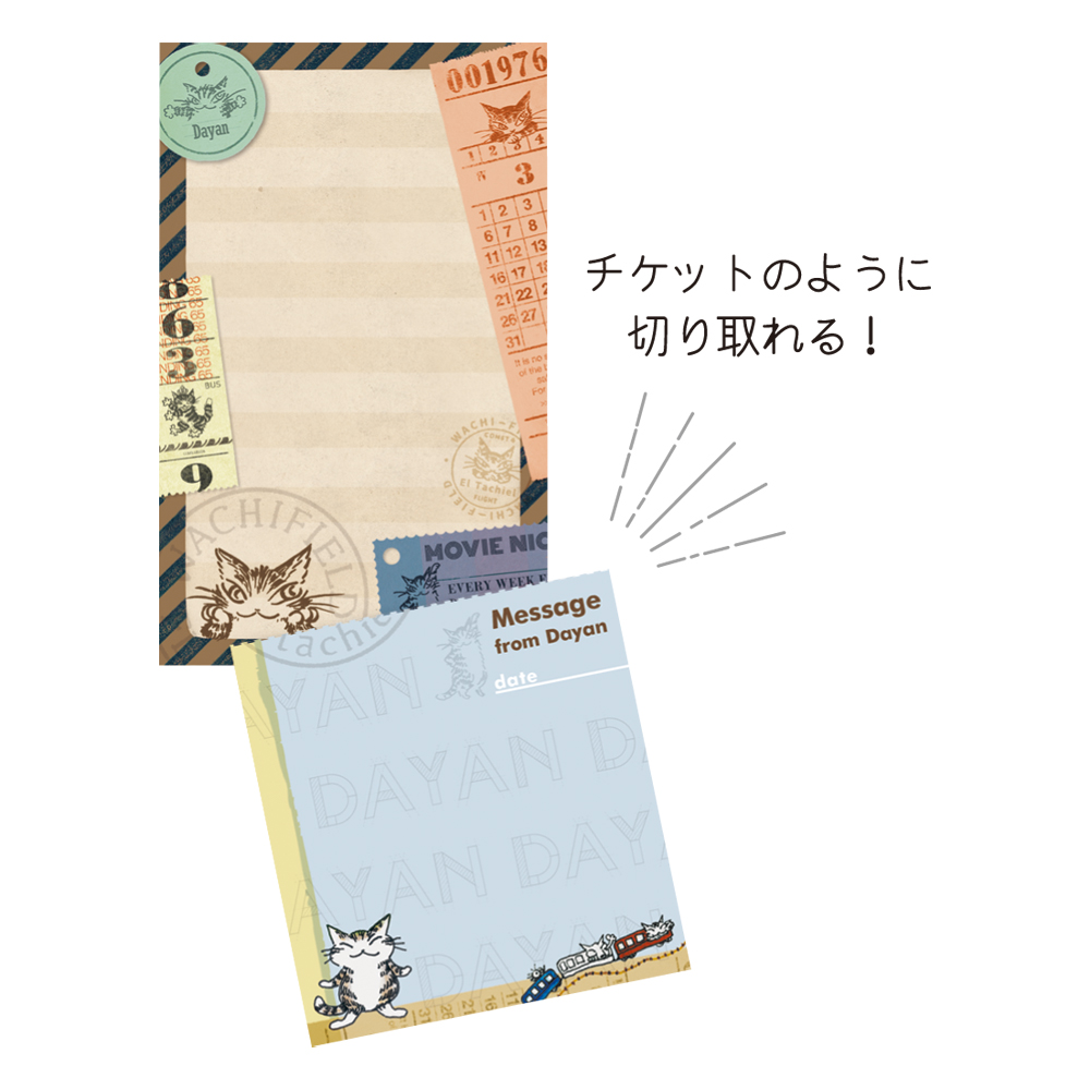 1枚に上下異なるデザインで、ミシン目のところをチケットのように1枚1枚ちぎって使うことができるメモ。