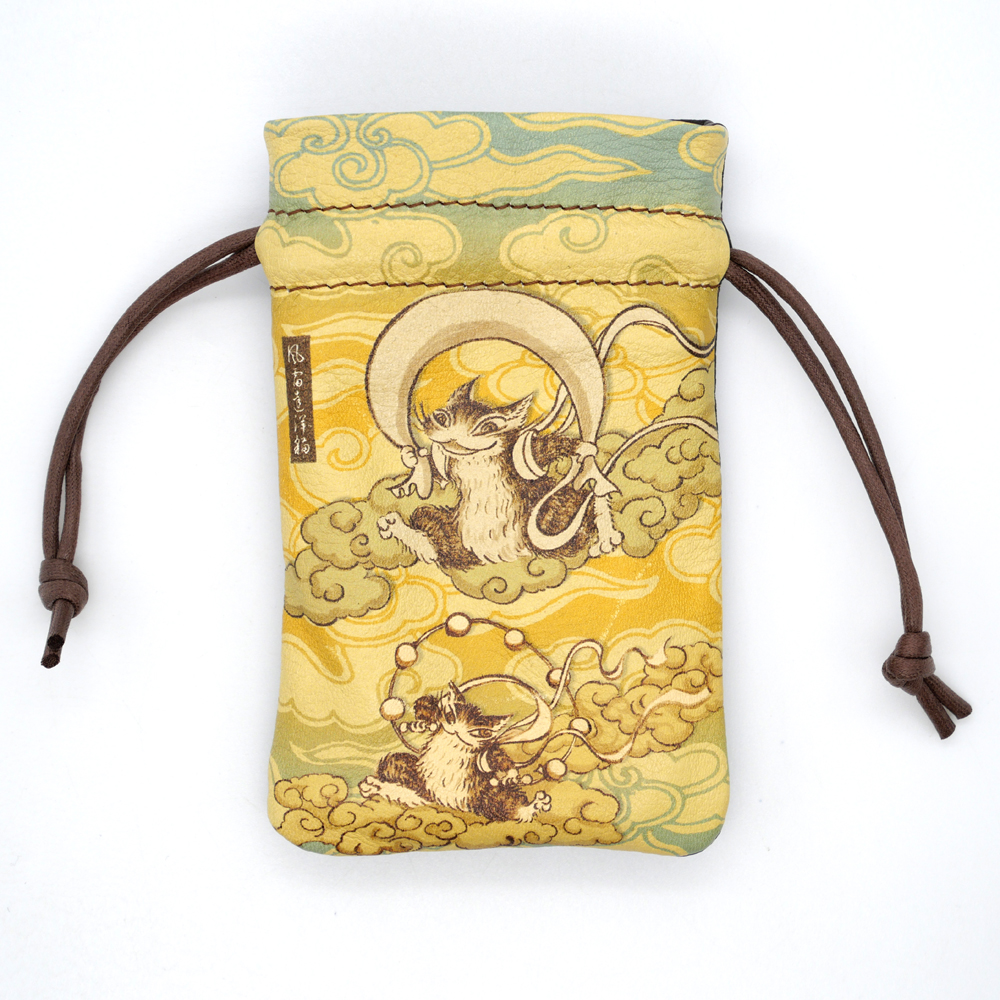 風神雷神福 革巾着