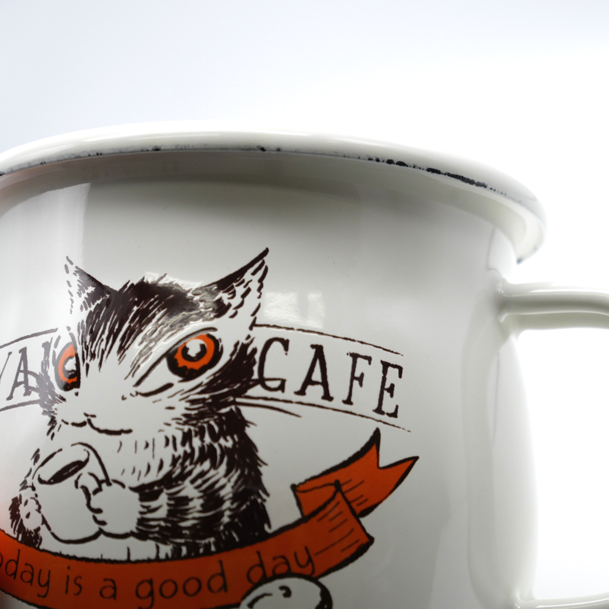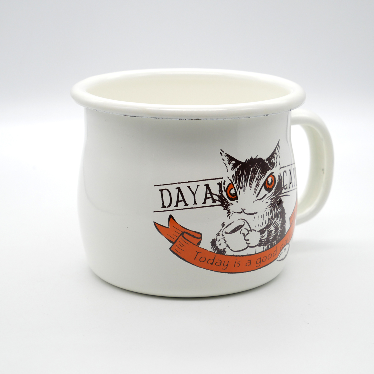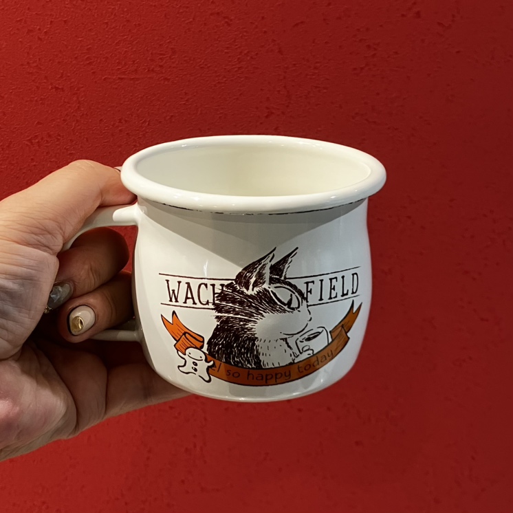ぽってりとした可愛い形のホーロー製マグカップです。