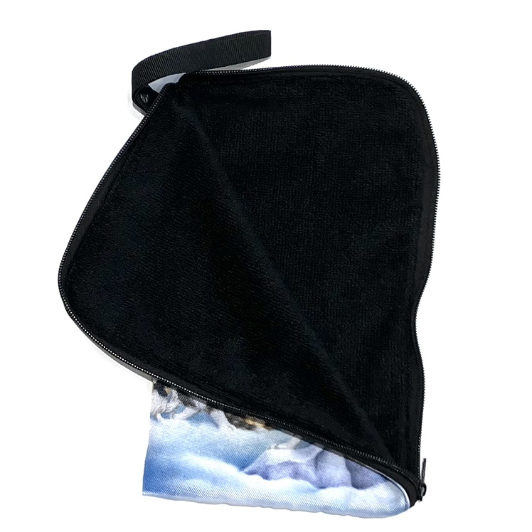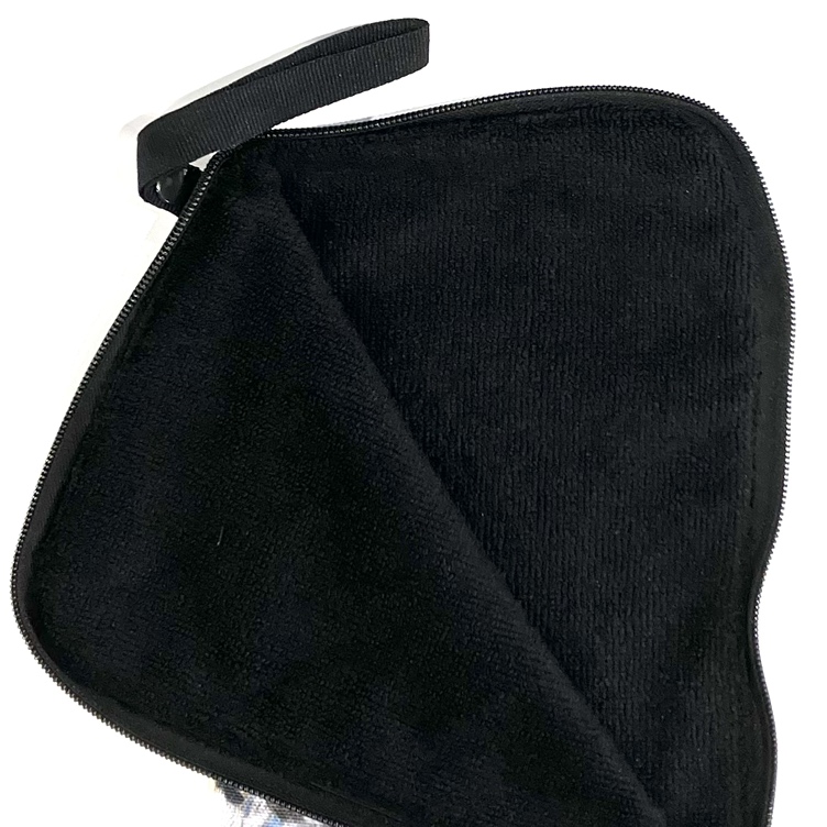表は美しいアート。中面は吸収性の高いマイクロファイバー素材なのでペットボトルを入れたり折りたたみ傘を入れるのにピッタリなアイテム。