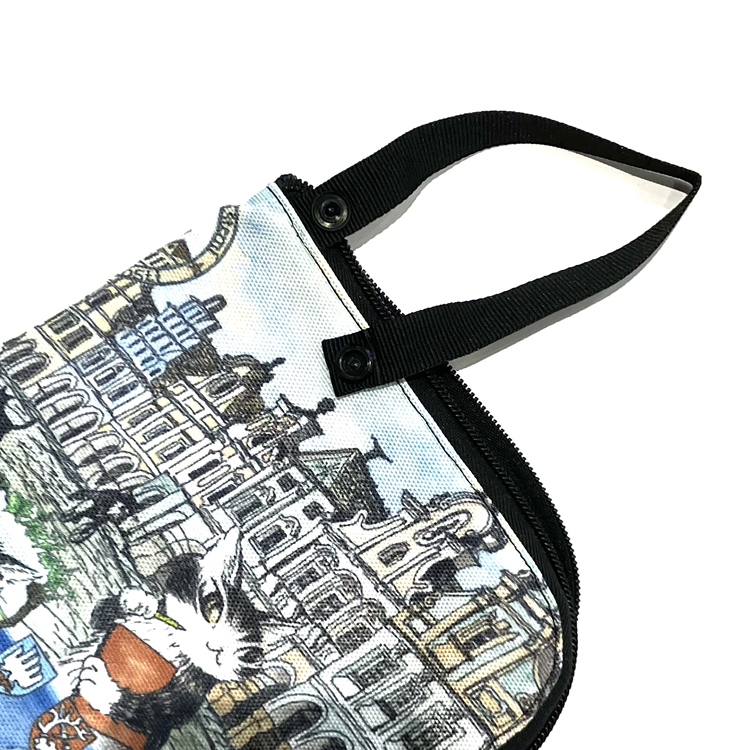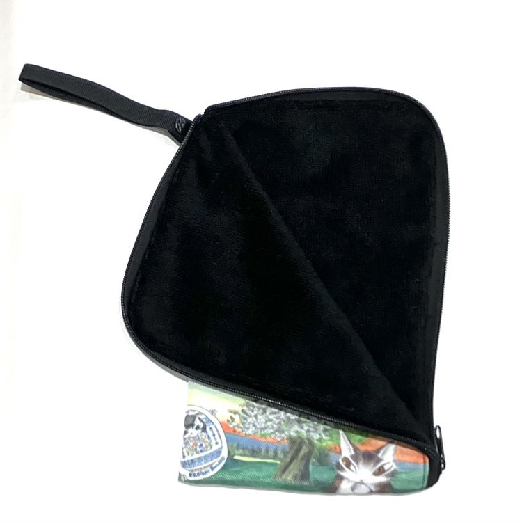 表は美しいアート。中面は吸収性の高いマイクロファイバー素材なのでペットボトルを入れたり折りたたみ傘を入れるのにピッタリなアイテム。