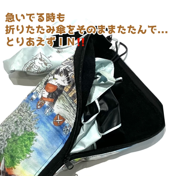 ※折りたたみの傘の長さによってはファスナーが閉まりきらずケースからはみ出てしまう場合があります。
