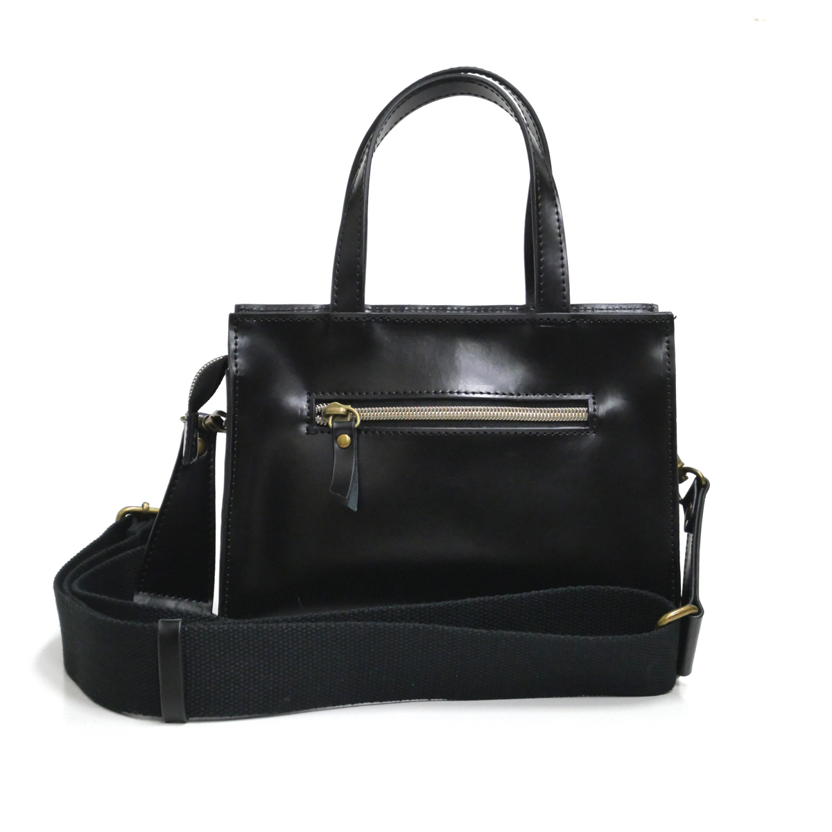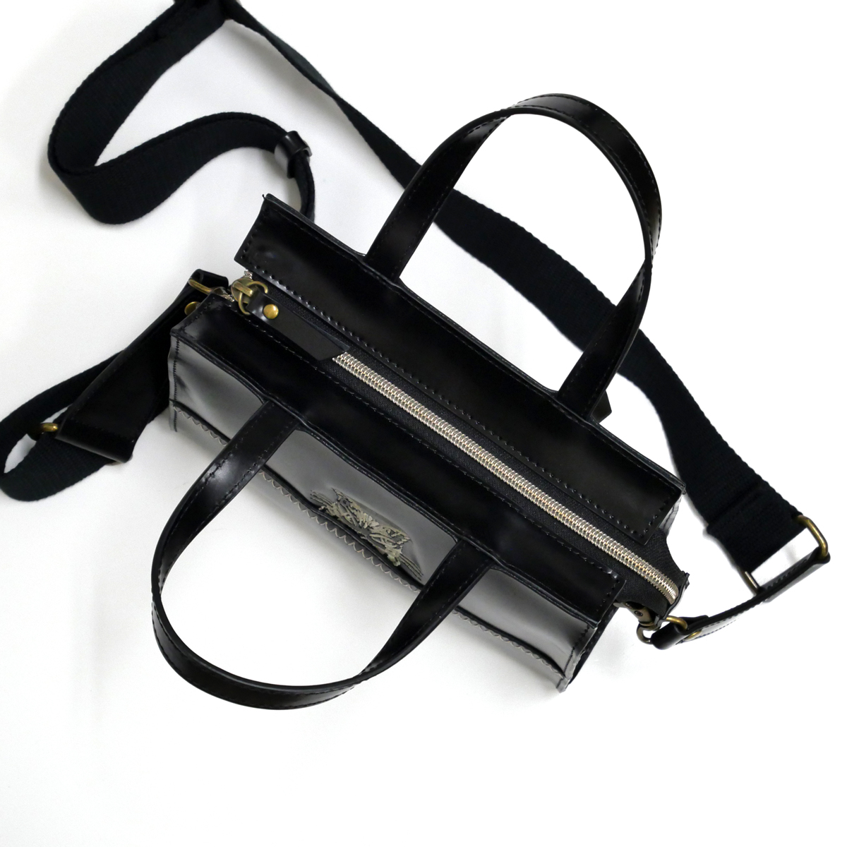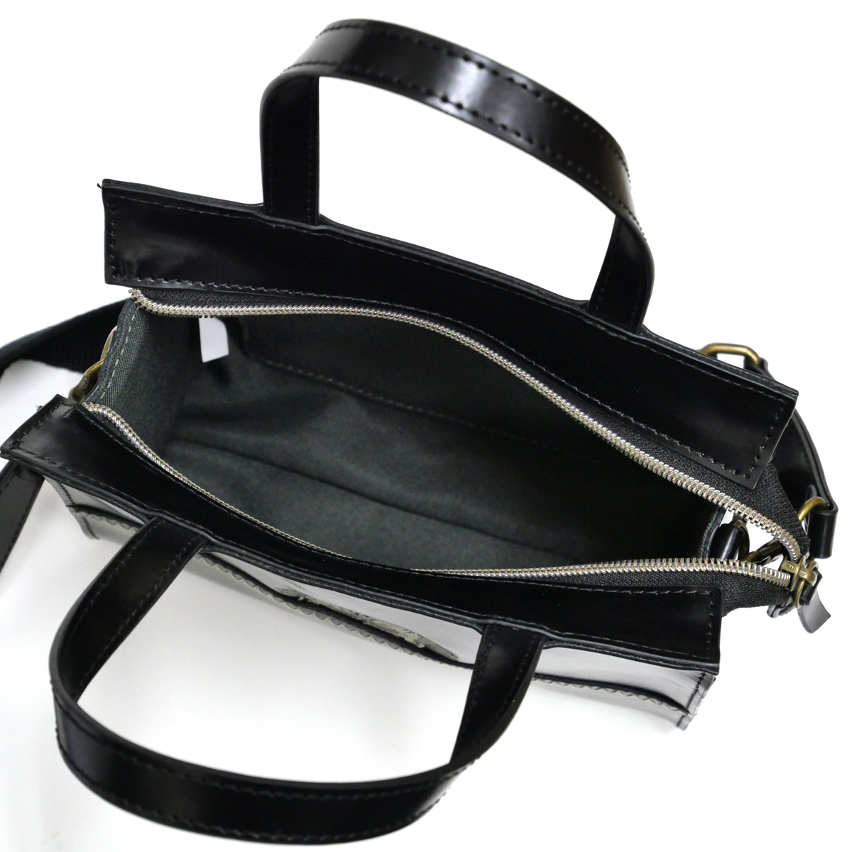 それらを樹脂をコーティングしたエコ素材を使った、きらっとしたツヤが魅力のミニバッグ。