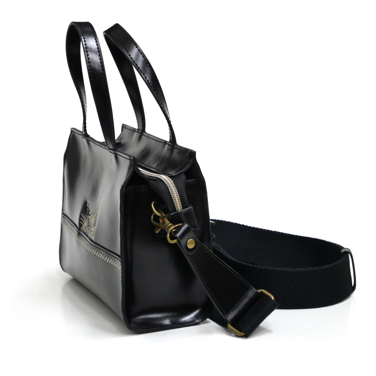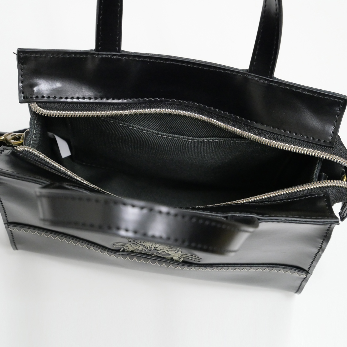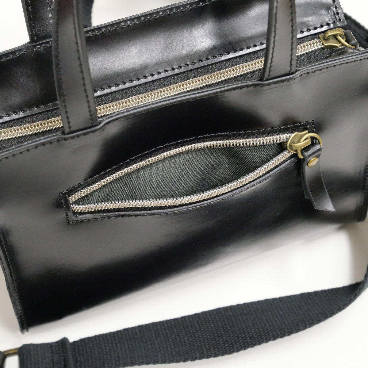 それらを樹脂をコーティングしたエコ素材を使った、きらっとしたツヤが魅力のミニバッグ。