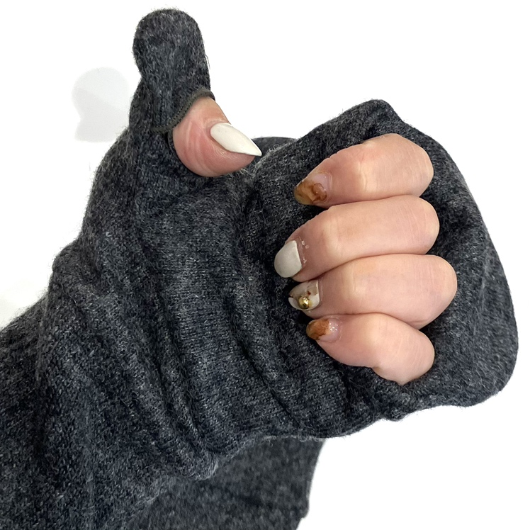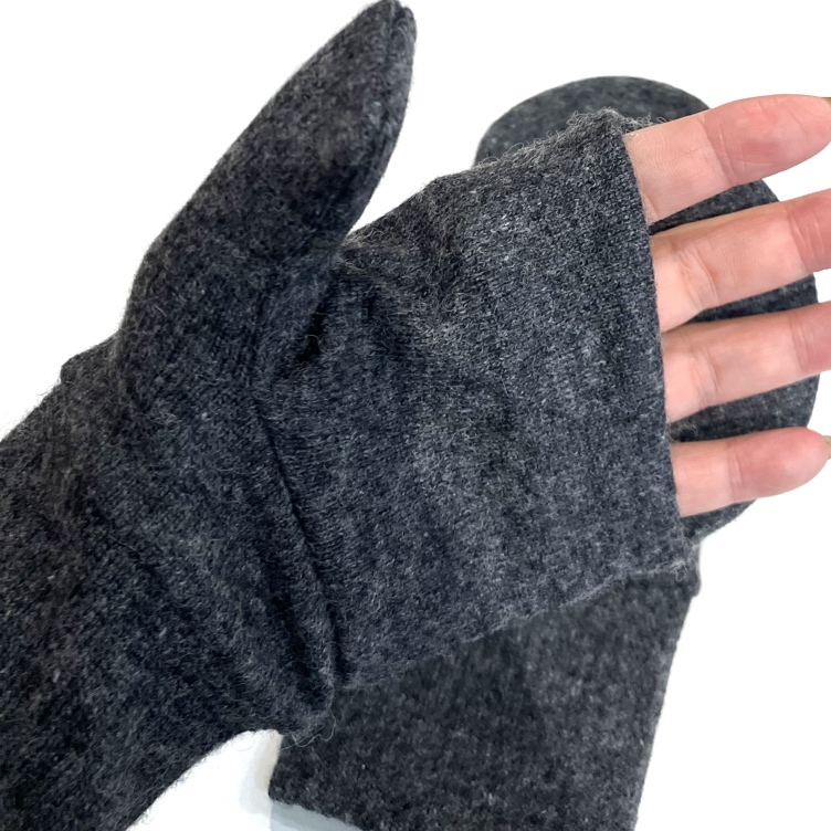 ウール混のあたたかミトンは99%リサイクル繊維。