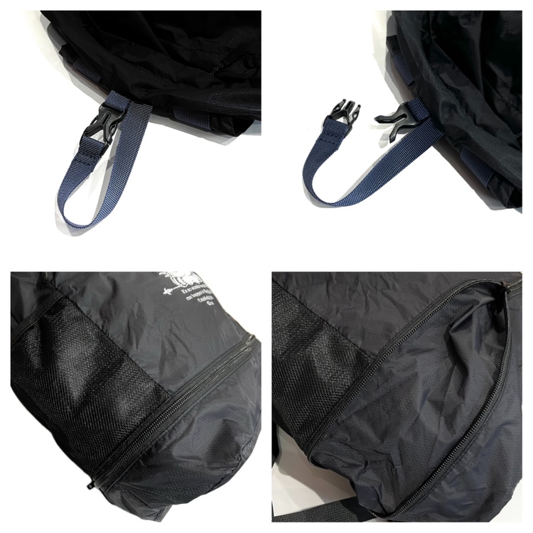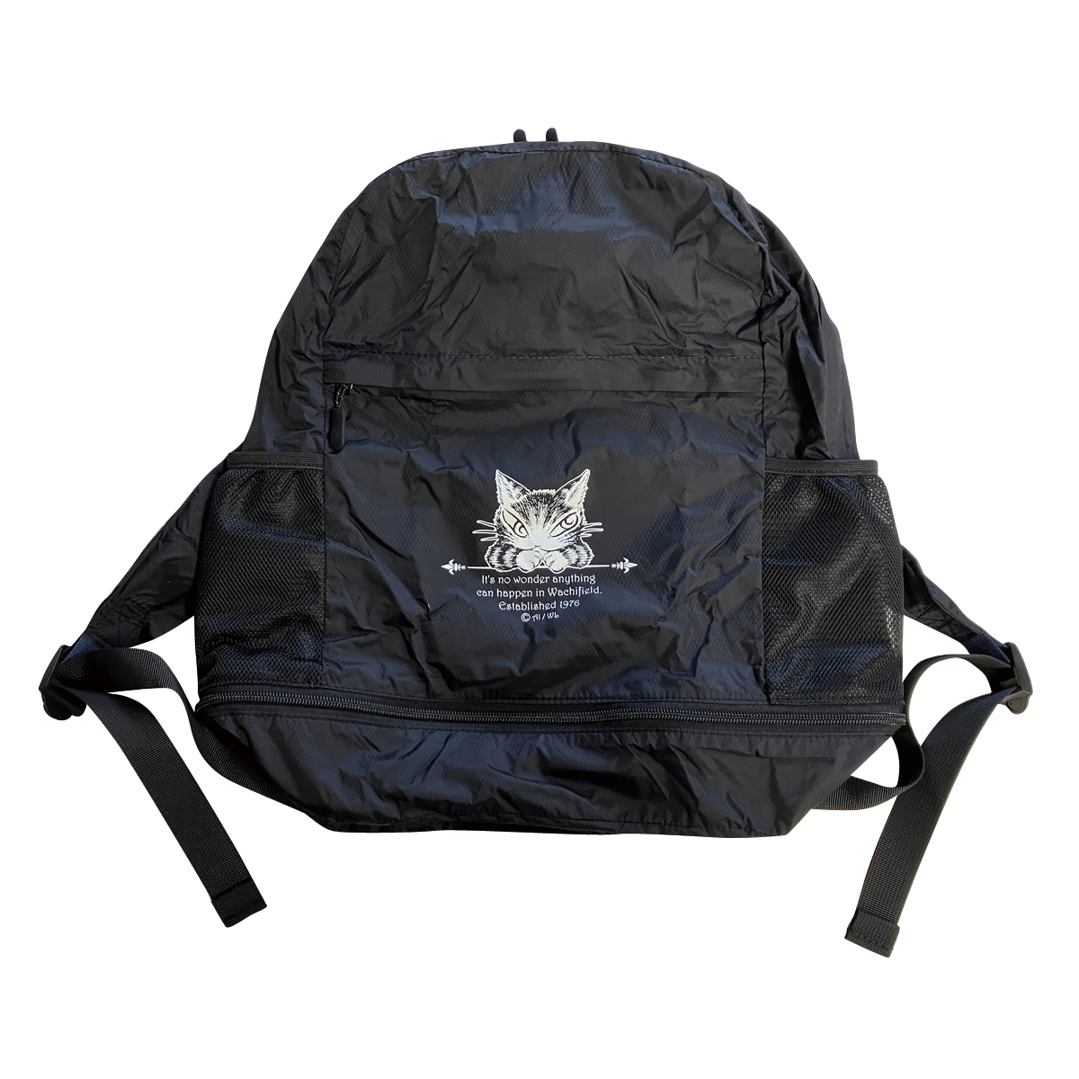 リップストップナイロン生地を使用したコンパクト収納ケース付きリュック。