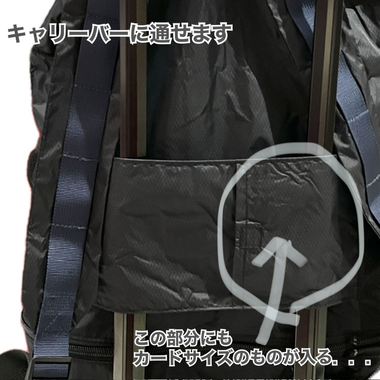 キャリーバーにもカンタン装着できるので・・・旅にもおすすめなリュックです。