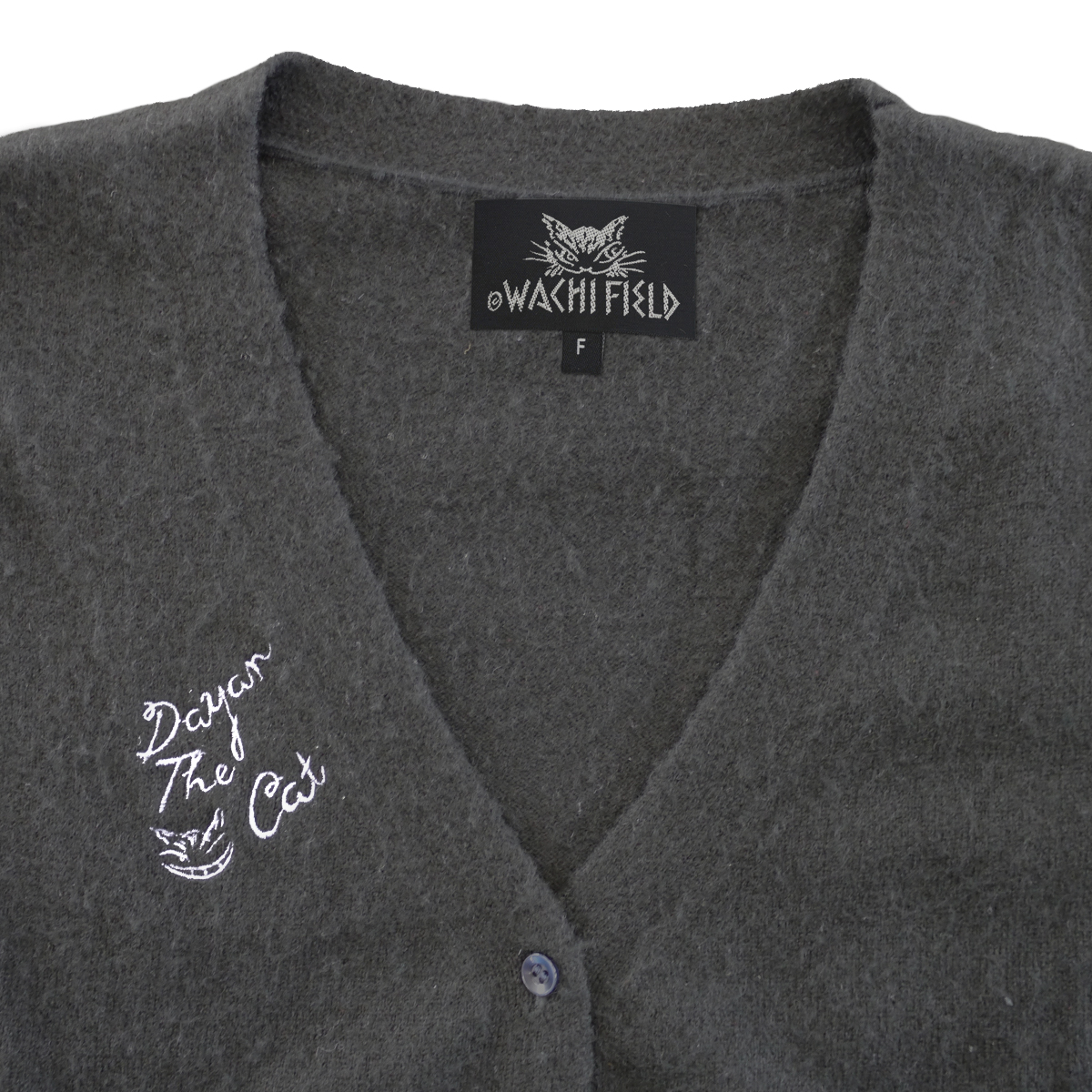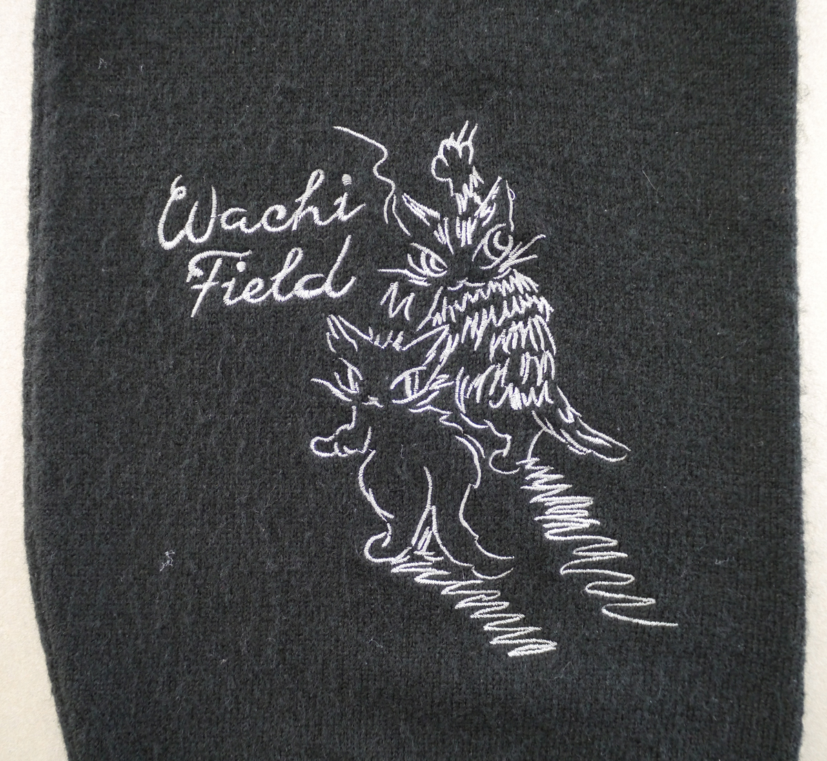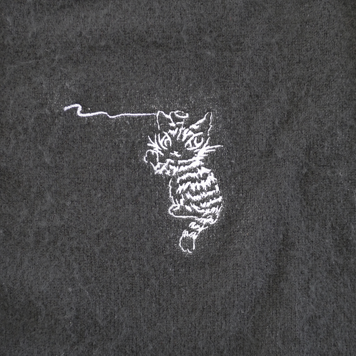 落書きをしているダヤンの刺繍があちこちに散りばめられています。カーデとお揃いで着用できるフードマフラー付きです。