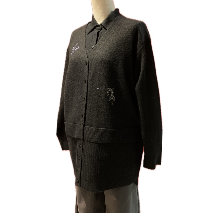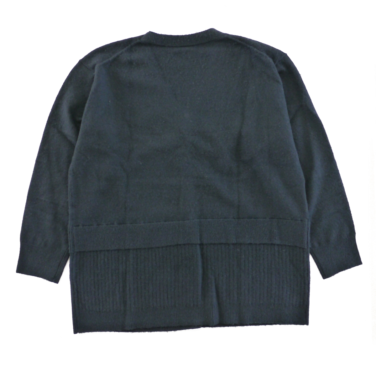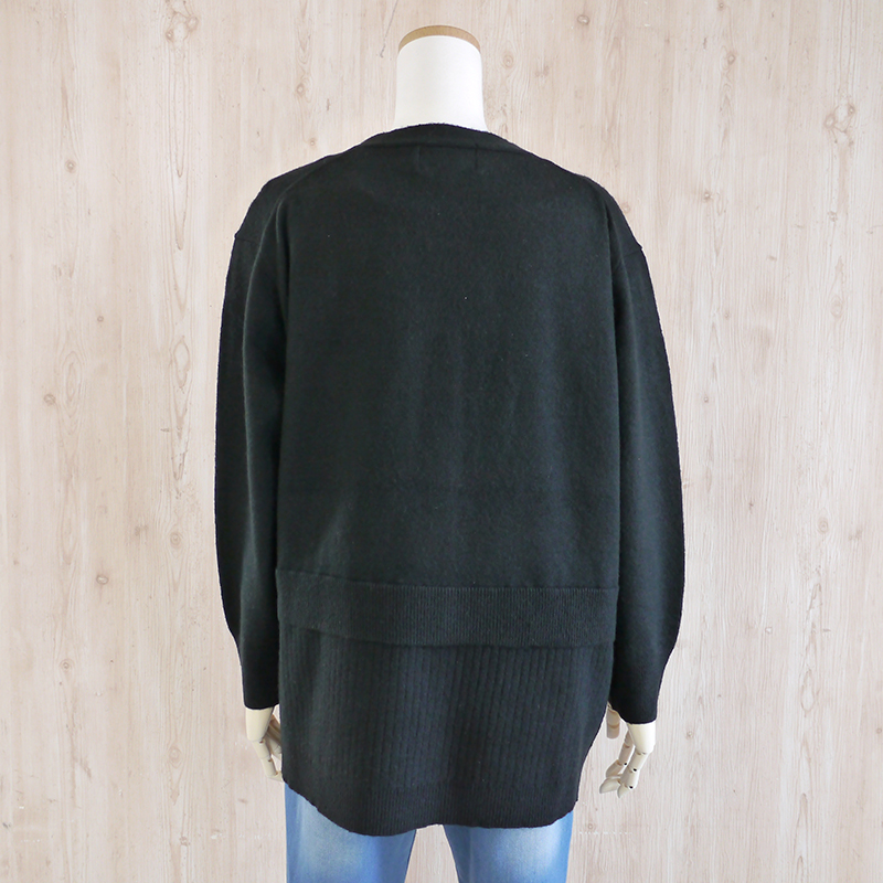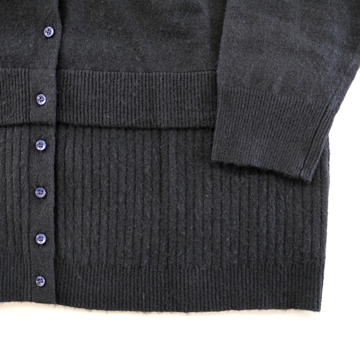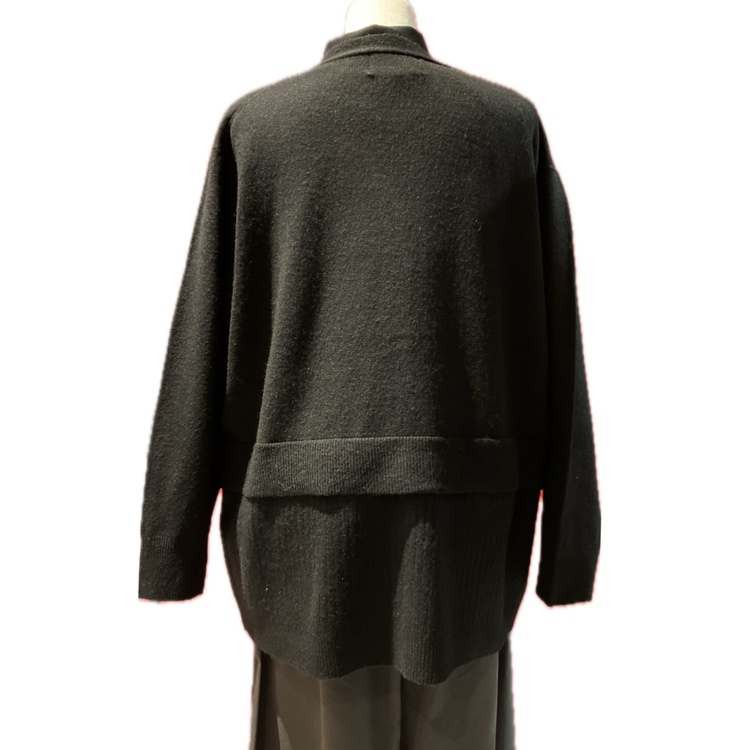 裾のリブが2段重ねになっているデザインのVネックニットカーデ。