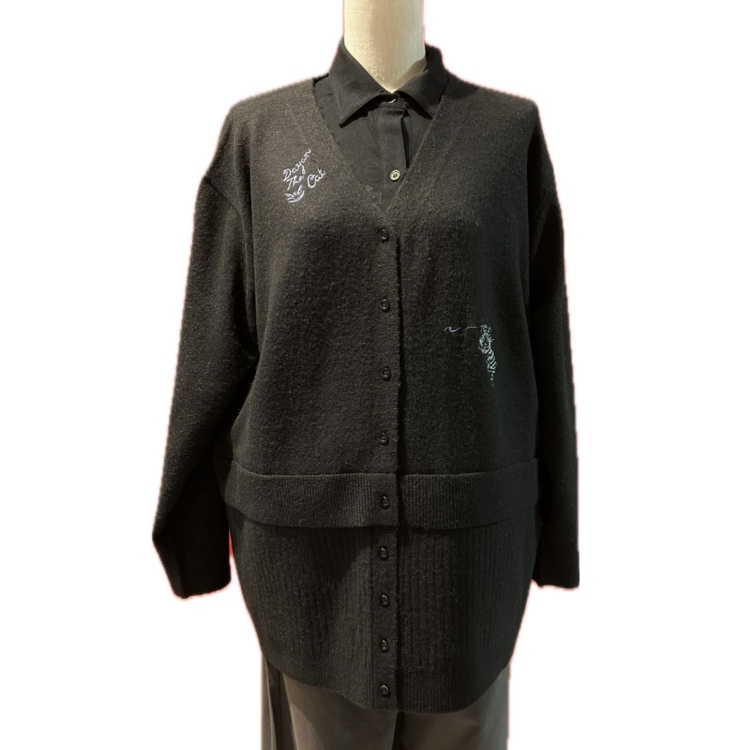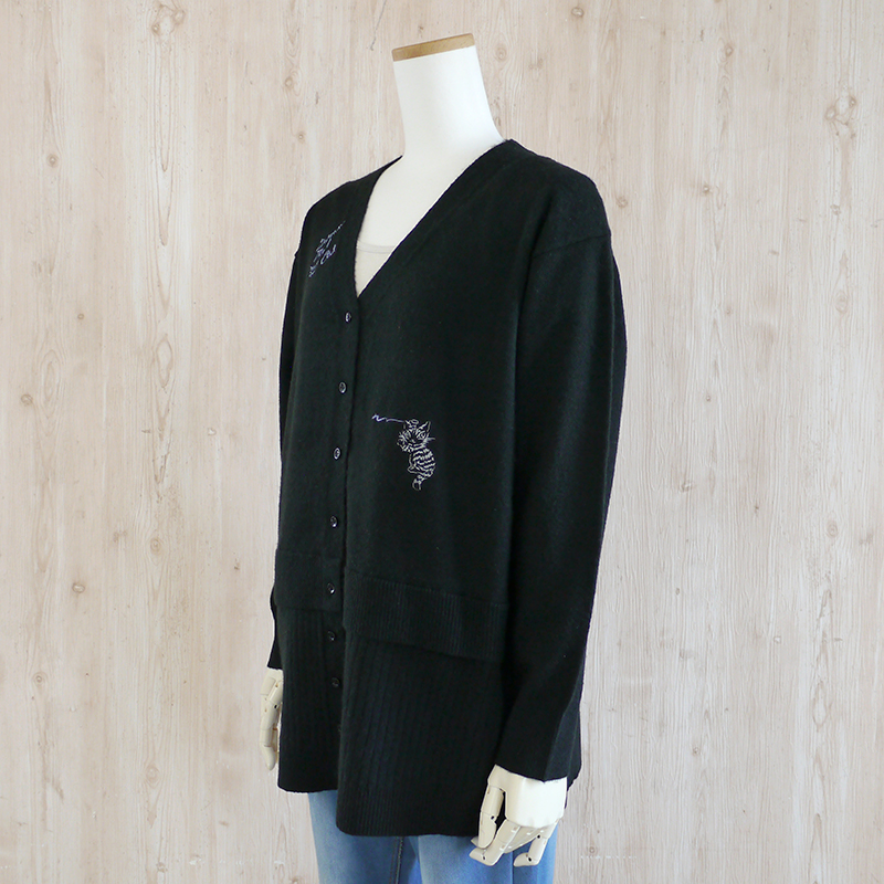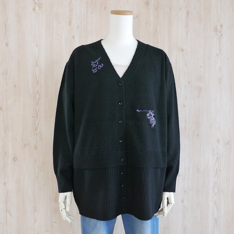 フード付きⅤネックカーディガン 落書き 黒 size:フリー