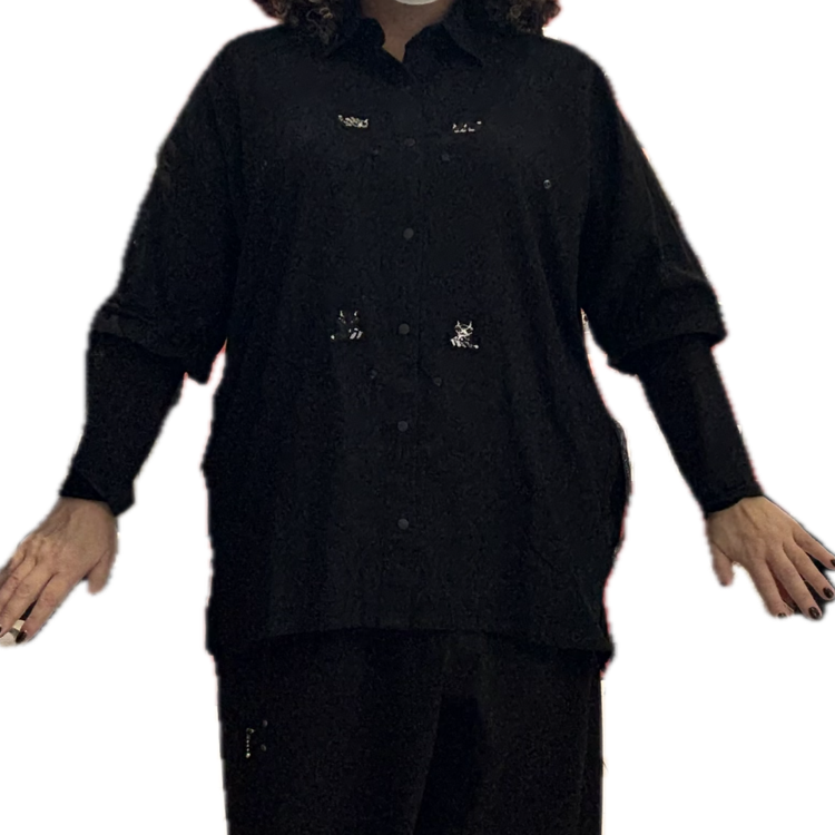 変化するスナップシャツ ダヤン&チップ 黒 size:フリー
