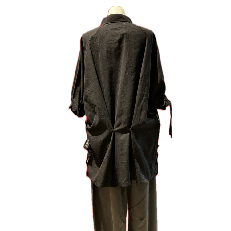 スナップボタンを留めなければただのダボッとした四角いシャツ。