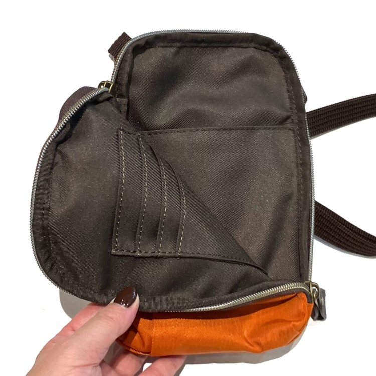 仕様:本体Wファスナー開閉・ファスナーポケット×1・オープンポケット×1・マグホックポケット×1・カードポケット×4・ハンドル付き