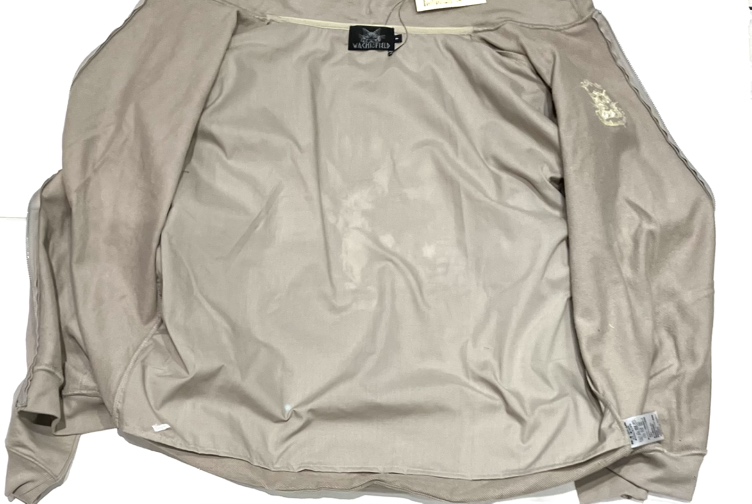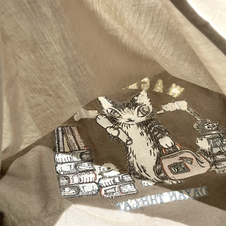 背裏にだけ刺繍の保護と綺麗な仕上げの為に裏地を付けていますので、暖かさも満足の1枚です。