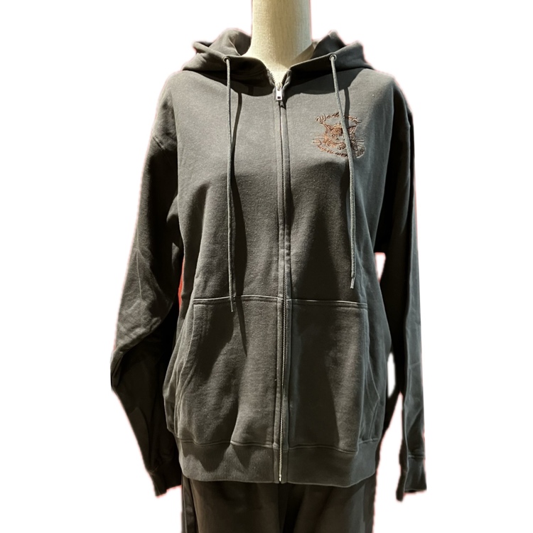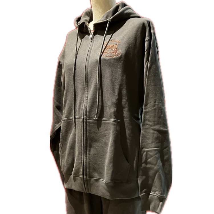 フルジップうでぐみ刺繍パーカ 墨 size:M