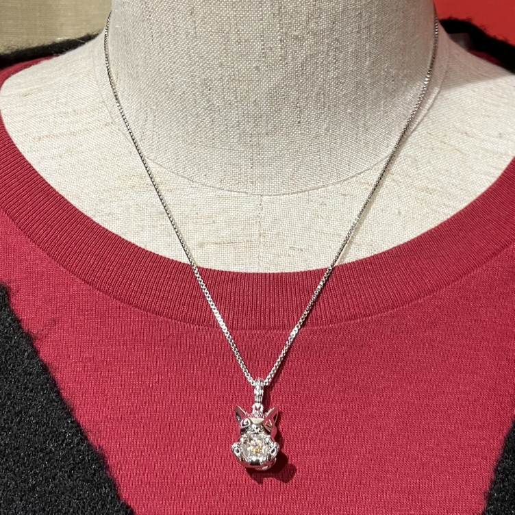チェーンは、45cm。お手持ちのチェーンや革ひもなどに付け替えてももちろんOK。