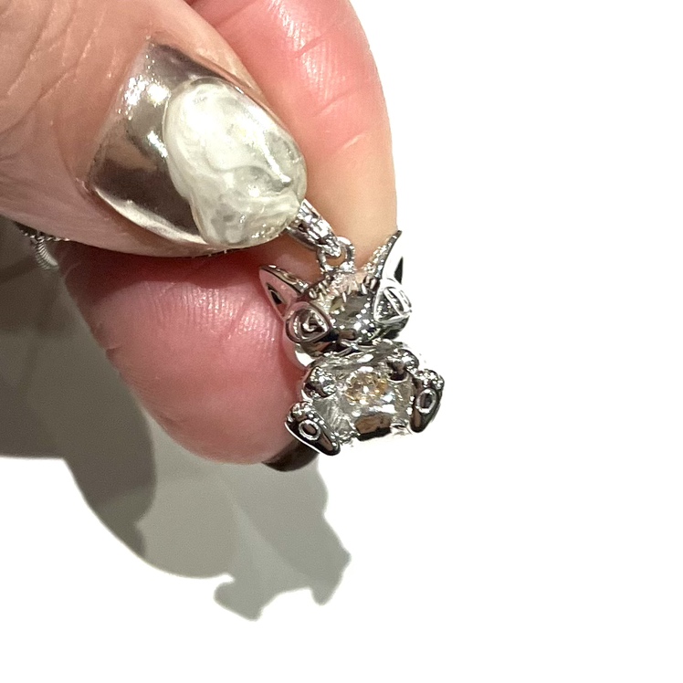 胸元でキラキラ揺れるカラージルコニアが付いたシルバーアクセ。