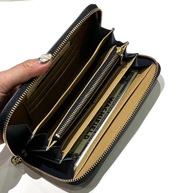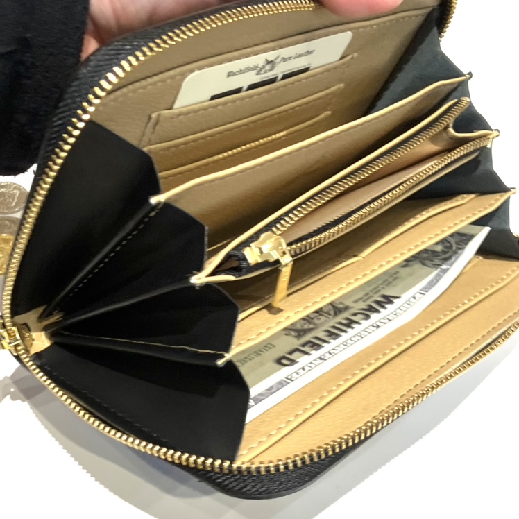 たっぷりマチの4室じゃばら構造で容量充分の万能財布です。