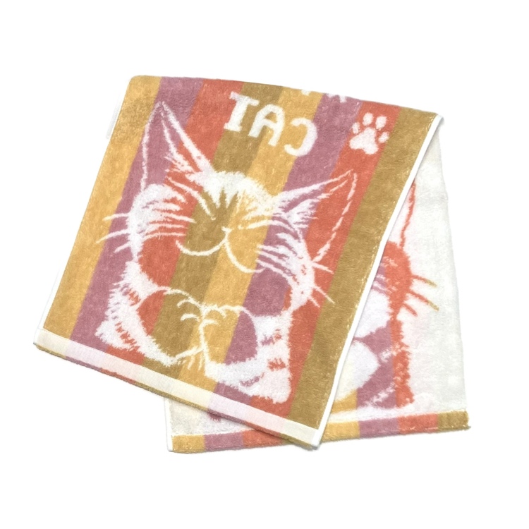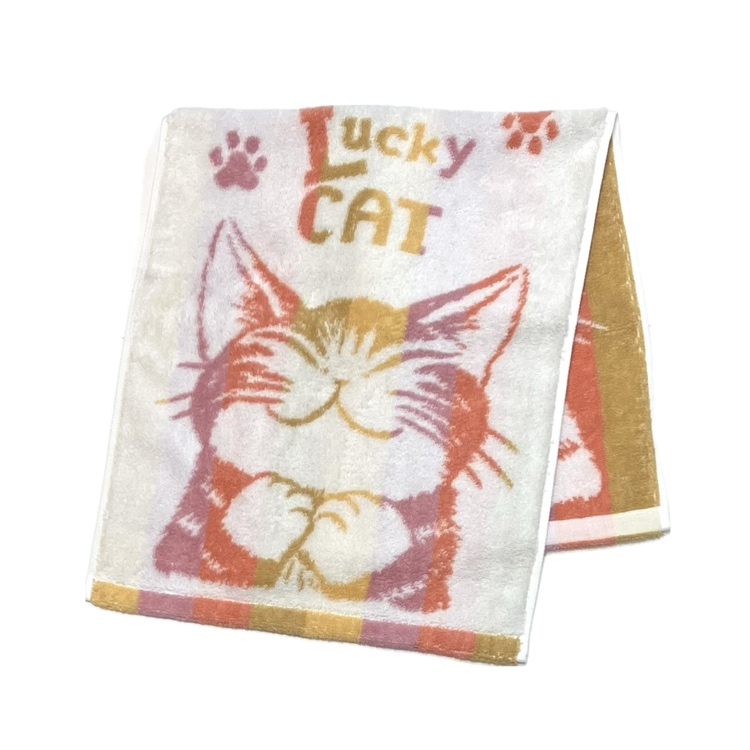 縞立てフェイスタオル うんのいいねこ