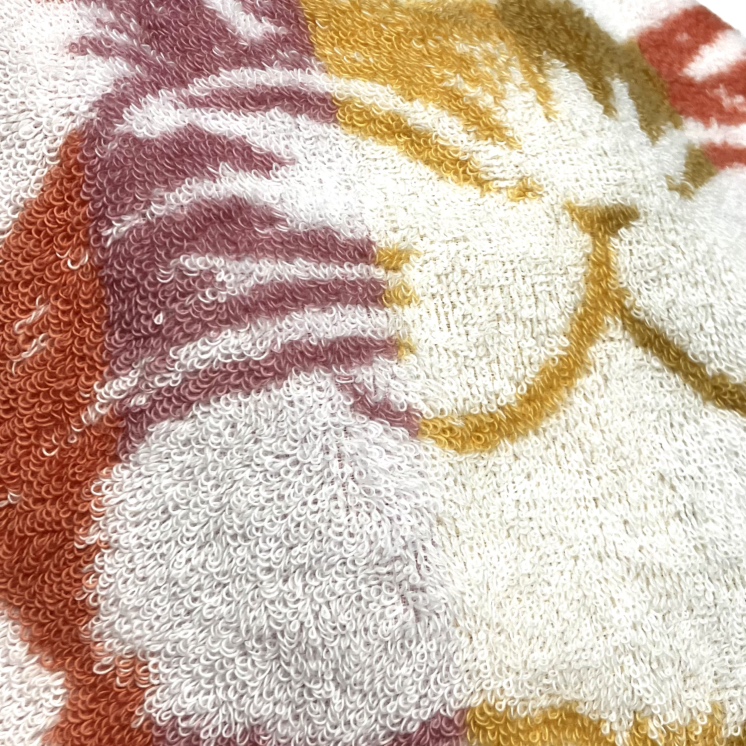 先染め糸を織ることで柄を表現してるからふっくらした風合いで色落ちがしにくく吸水性に優れています。