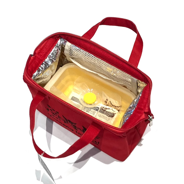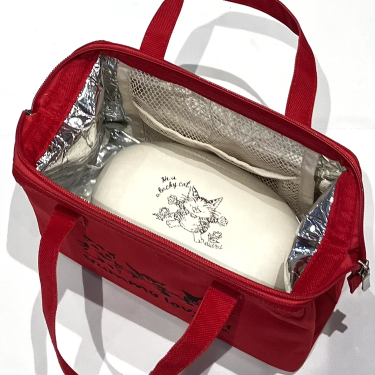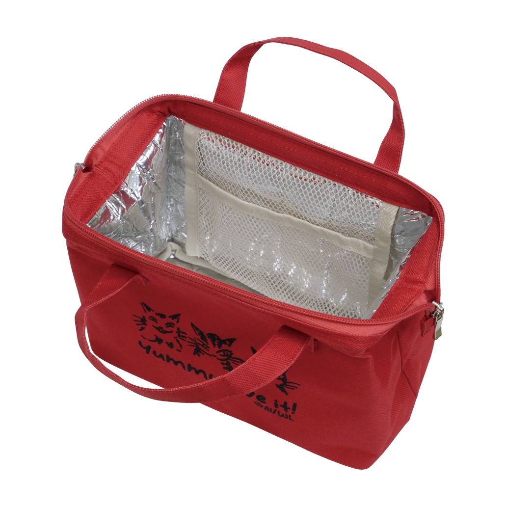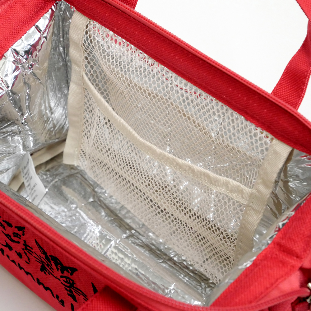 便利なダブルファスナー仕様で、バッグ内側は通気性の良いメッシュポケット付きで保冷剤やふりかけ等が入ります。