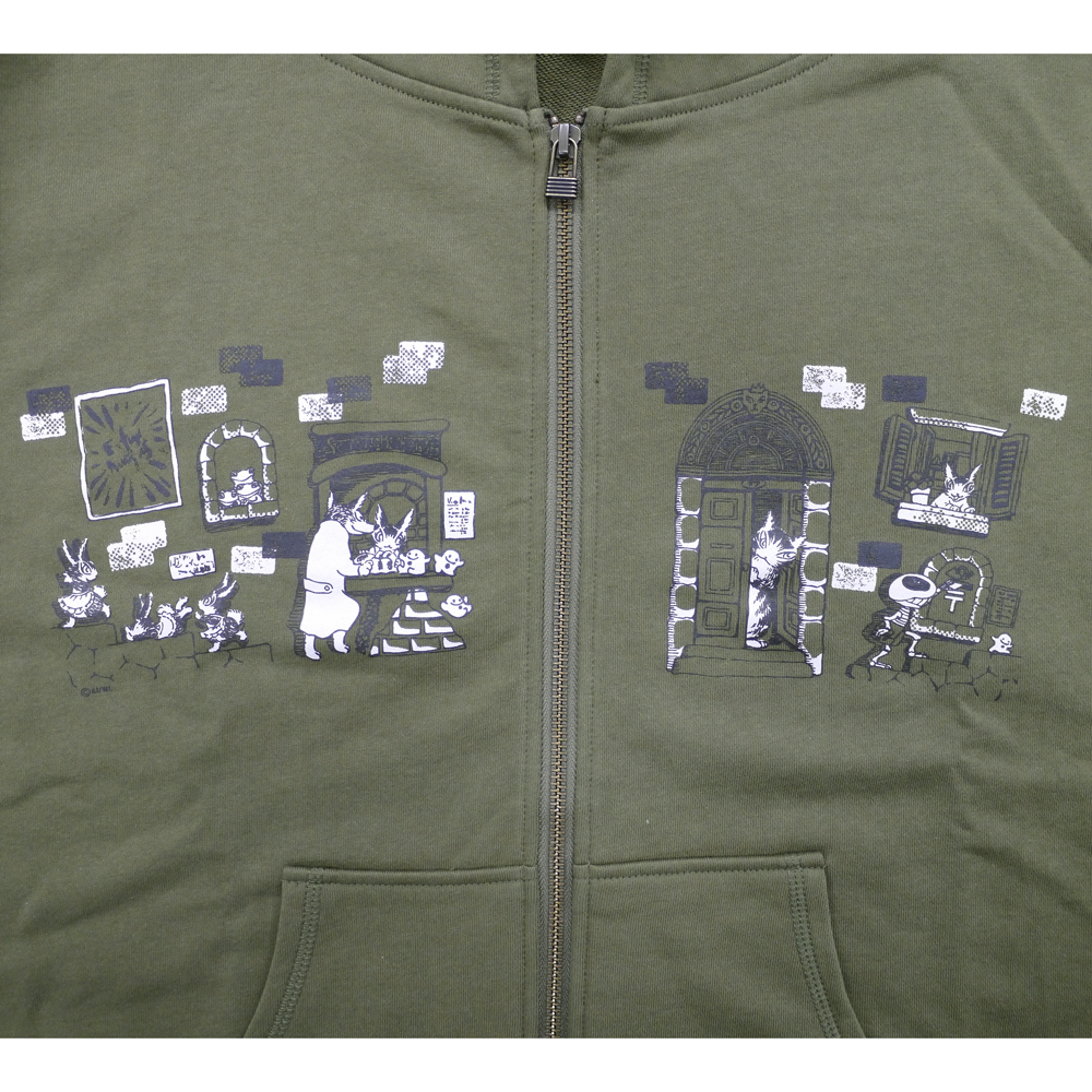 約3シーズン大活躍な前下がりが深いスウェット地のパーカーカーデ。