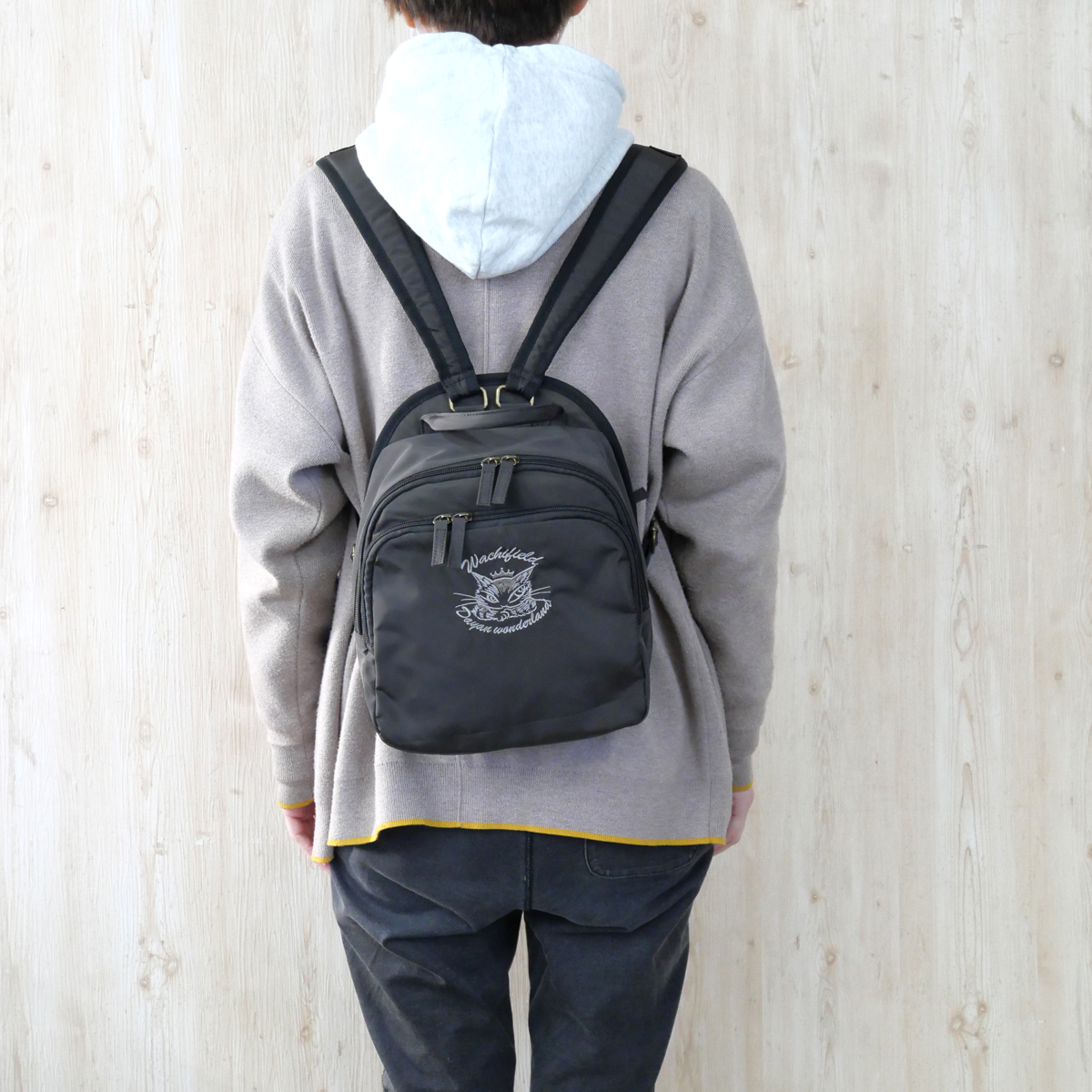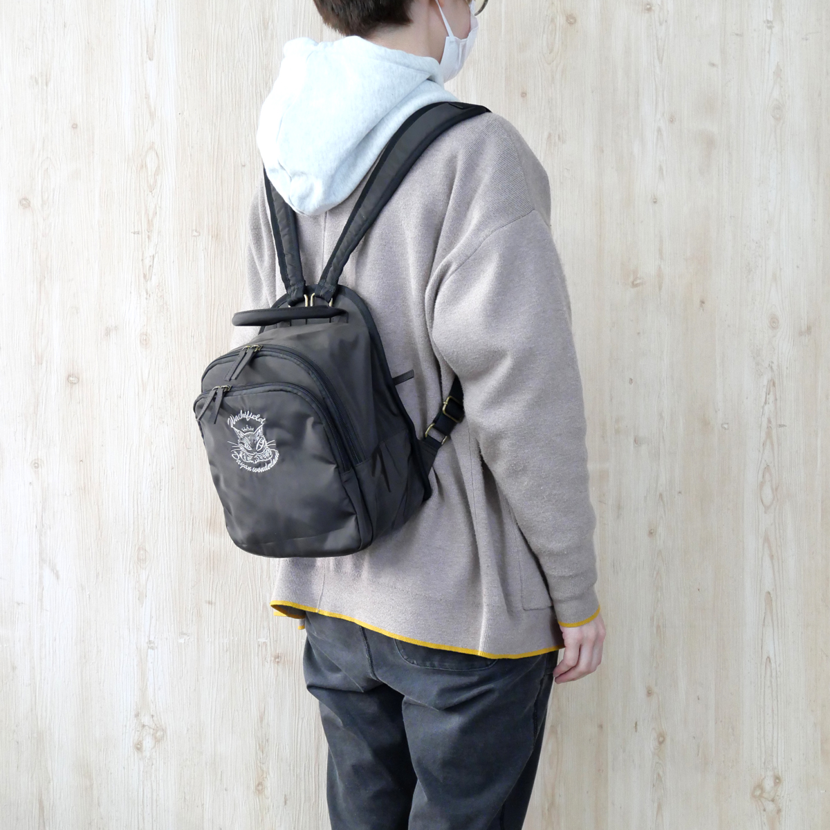 カジュアルな装いから、ちょっとかしこまったシーンでもなじみやすいグレークラウンのコンパクトリュック。