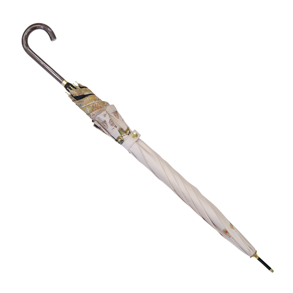 激しい雨や長時間の雨傘としてのご使用は生地に雨水がしみこむ場合がございますのでご注意ください
