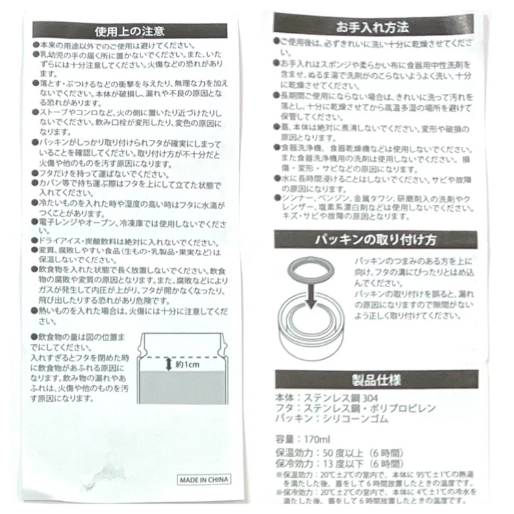 ※容量いっぱいいれると、フタをしたときに中身がこぼれる恐れがあるので1cmくらい残して中身を入れてください