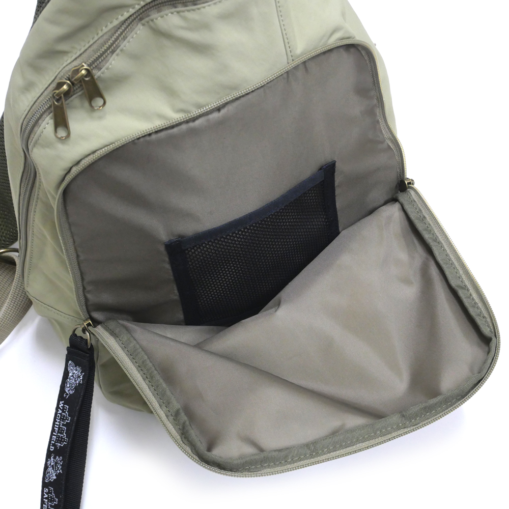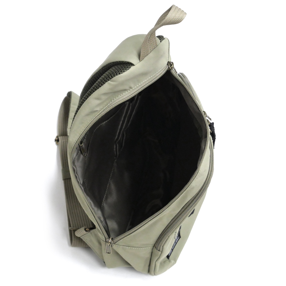 仕様:本体Wファスナー開閉・オープンポケット×1・Wファスナーポケット×1・ファスナーポケット×2・メッシュポケット×1・ペン差し×2・ボトルホルダー×1