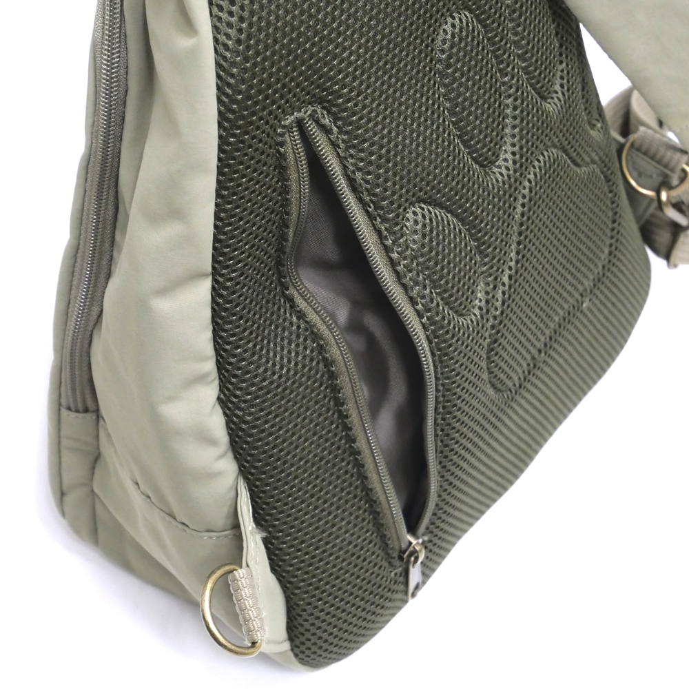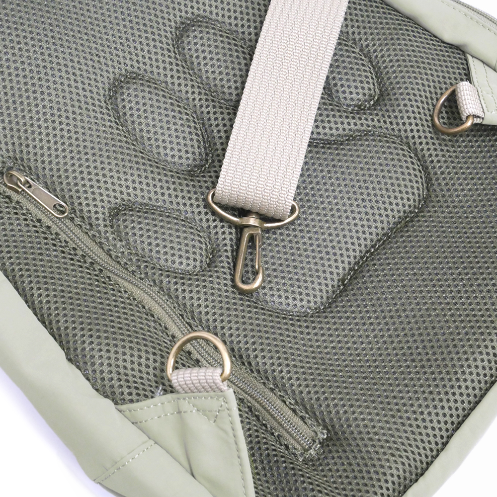 背面をメッシュになってるので通気性もよく、背面ポケットには貴重品を・・・。