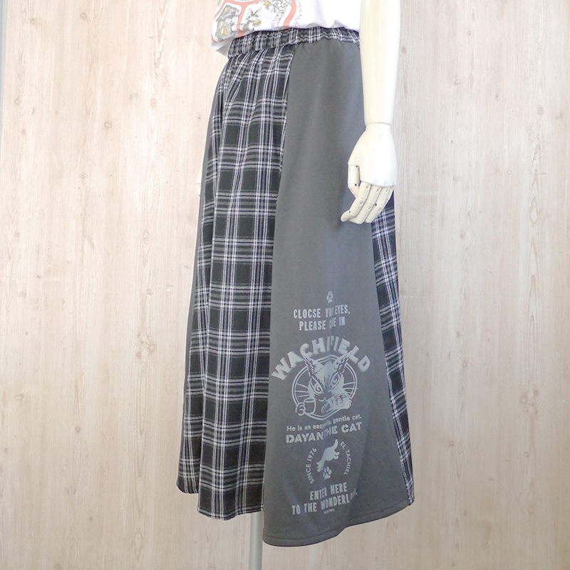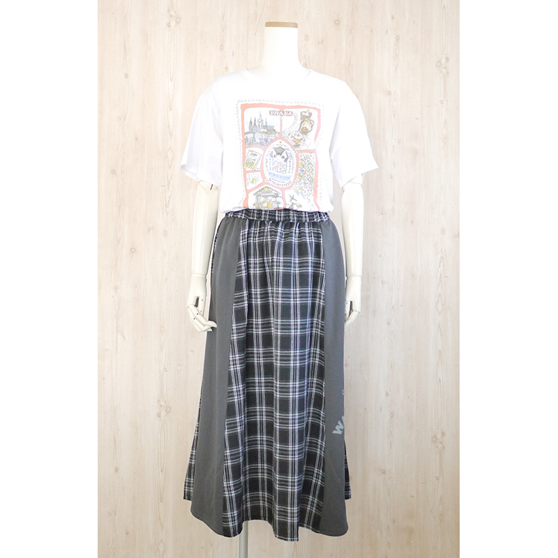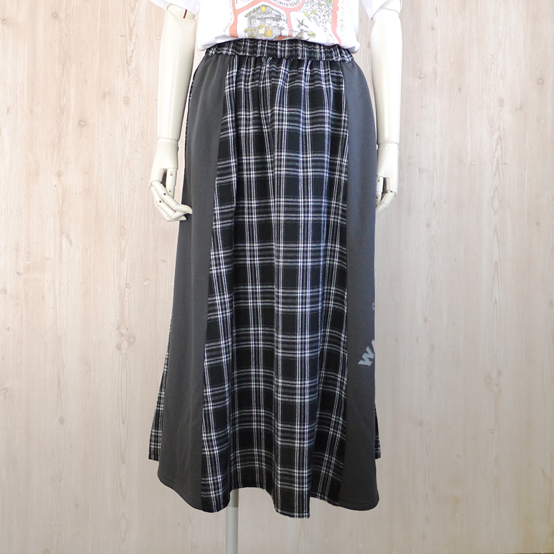 異素材ロングスカート ロゴ 黒チェック size:フリー