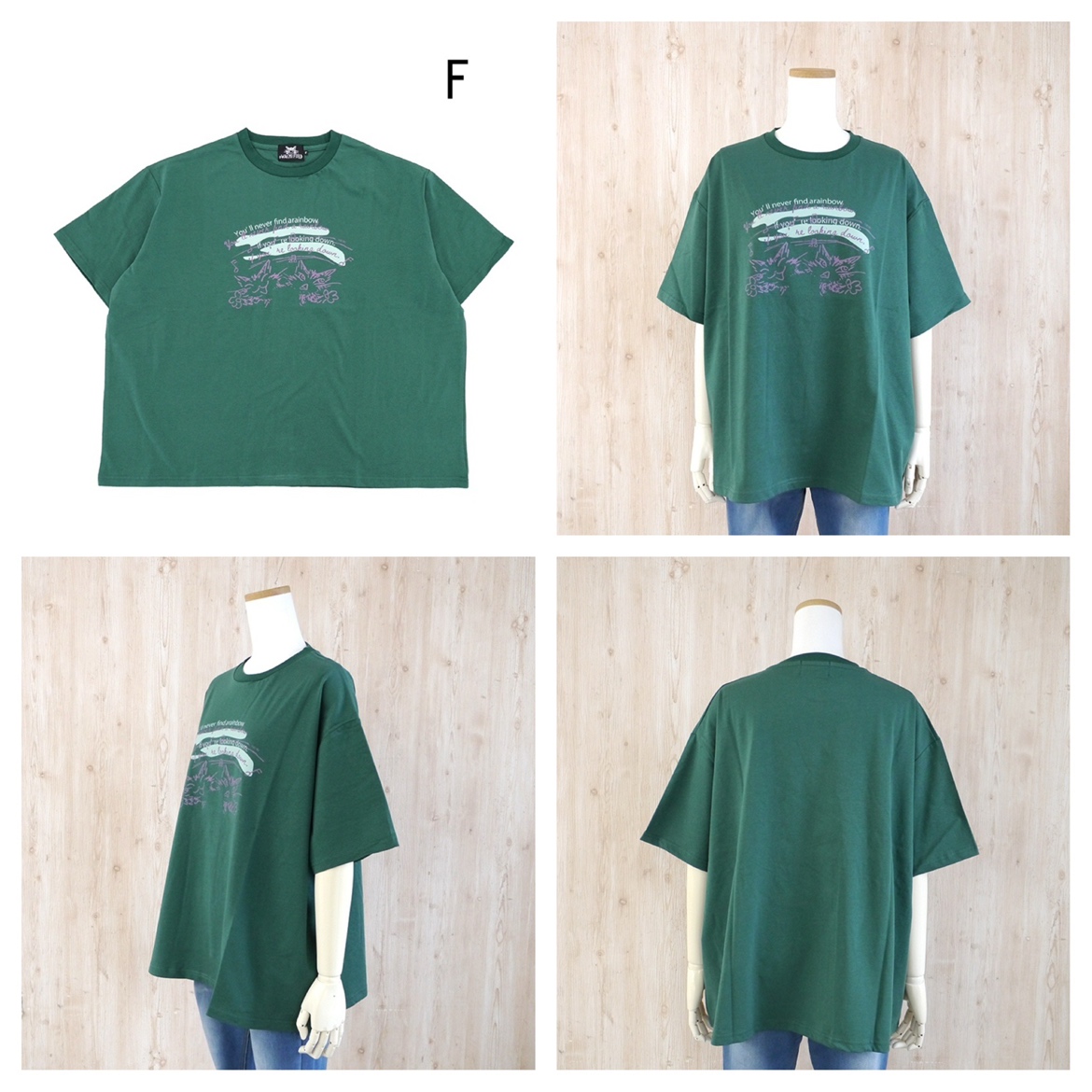 虹をオーバーTシャツ ミッドグリーン size:フリー