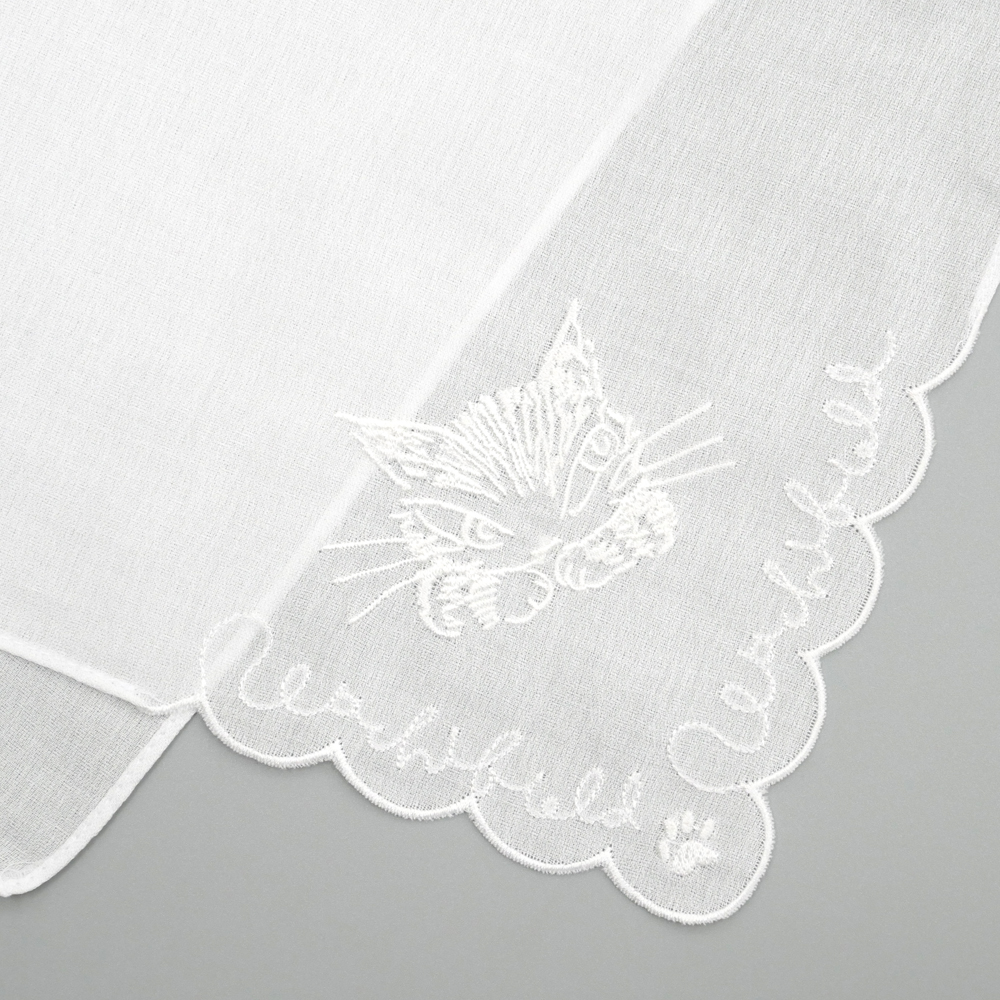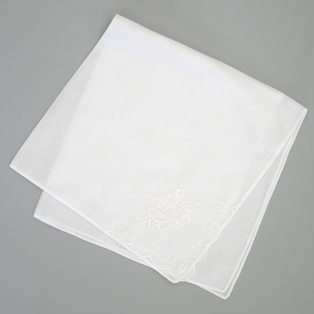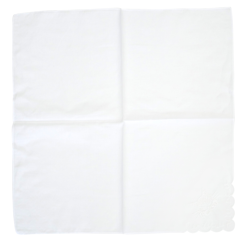 シンプルな綿ハンカチにコーナー刺繍を施し、持つ人を選びません。