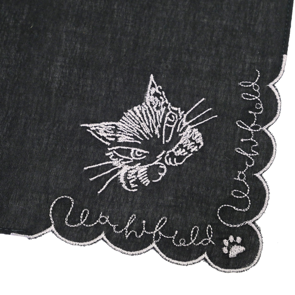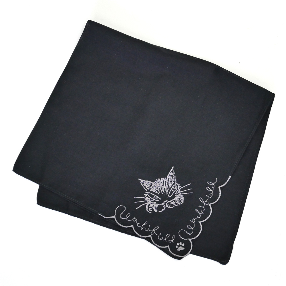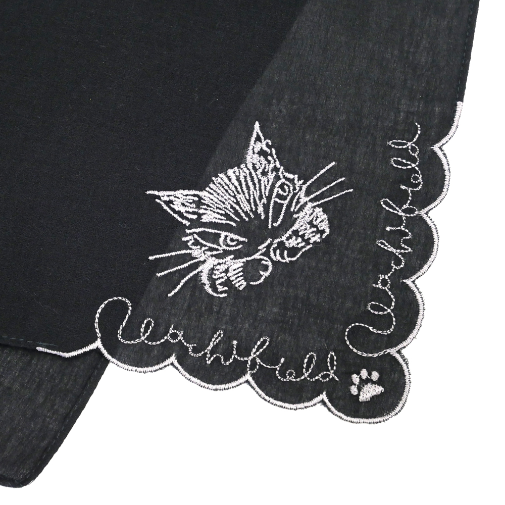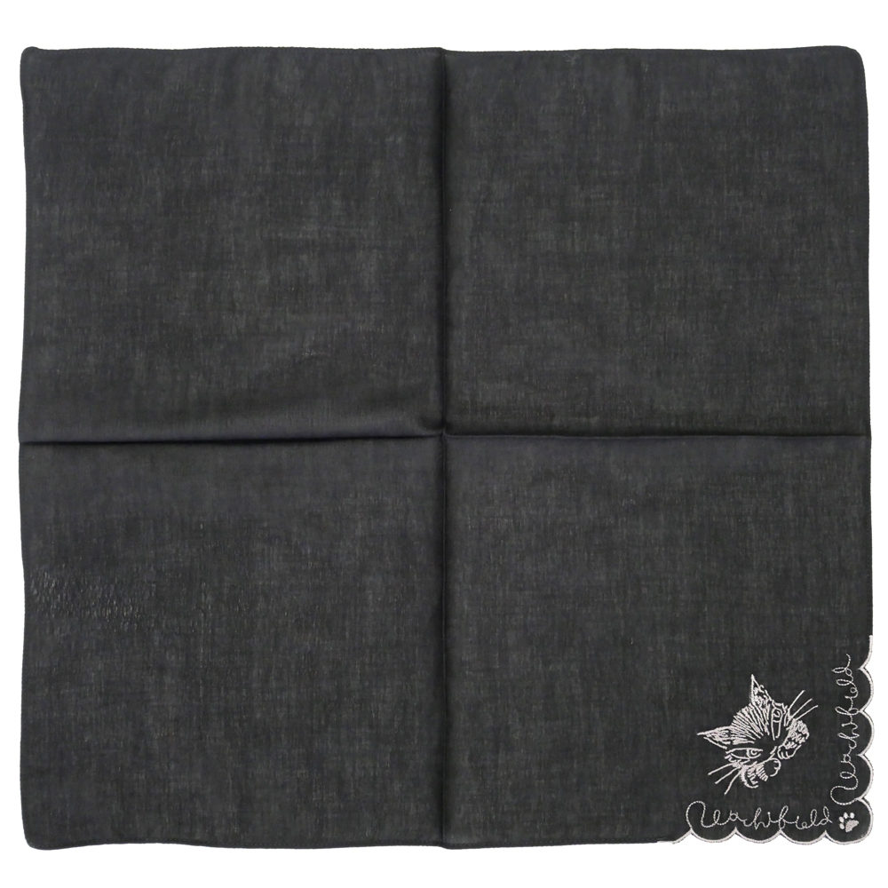 シンプルな綿ハンカチにコーナー刺繍を施し、持つ人を選びません。